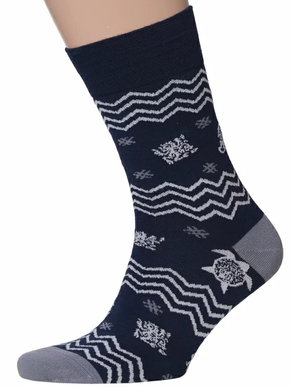 Круглогодичные средней длины мужские носки, цвет темно-синий, повседневные, шов обычный (не бесшовные), принт (рисунок): путешествия, крупные контрастные рисунки, с узором, состав: 82% хлопок, 15% полиамид, 3% эластан, арт. Nm-272. Производитель «ИП Рыбалкин В.С., Московская область, г. Щелково» под брендом «Msclub».