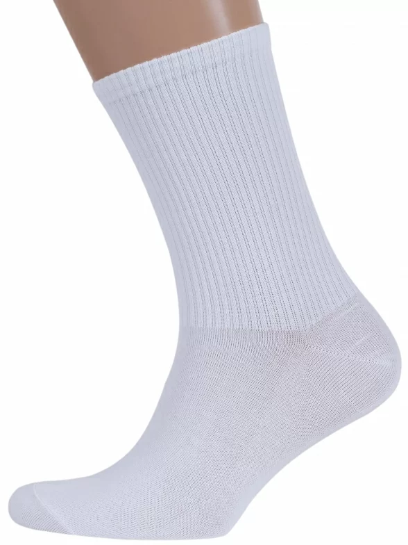 Круглогодичные средней длины носки унисекс, цвет белый, спортивные, шов обычный (не бесшовные), принт (рисунок): в рубчик, однотонный, состав: 80% хлопок, 14% полиамид, 6% эластан, арт. Nm-50. Производитель «ИП Рыбалкин В.С., Московская область, г. Щелково» под брендом «Msclub».
