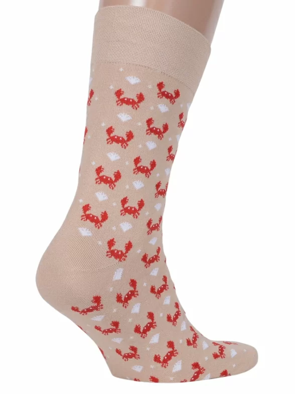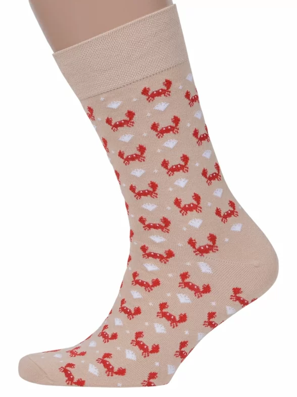 Круглогодичные средней длины мужские носки, цвет бежевый, повседневные, шов обычный (не бесшовные), принт (рисунок): путешествия, море, животные, с узором, состав: 82% хлопок, 15% полиамид, 3% эластан, арт. Nm-314. Производитель «ИП Рыбалкин В.С., Московская область, г. Щелково» под брендом «Msclub».