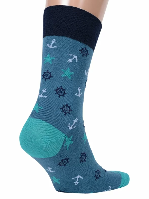 Мужские носки MSCLUB №М29, nm-313, ТЕМНО-БИРЮЗОВЫЕ с якорями