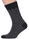 Круглогодичные средней длины мужские носки, цвет черный + белый-черный, классические, шов обычный (не бесшовные), принт (рисунок): зигзаг / молния, с узором, состав: 82% хлопок, 15% полиамид, 3% эластан, арт. Nm-328. Производитель «ИП Рыбалкин В.С., Московская область, г. Щелково» под брендом «Msclub».