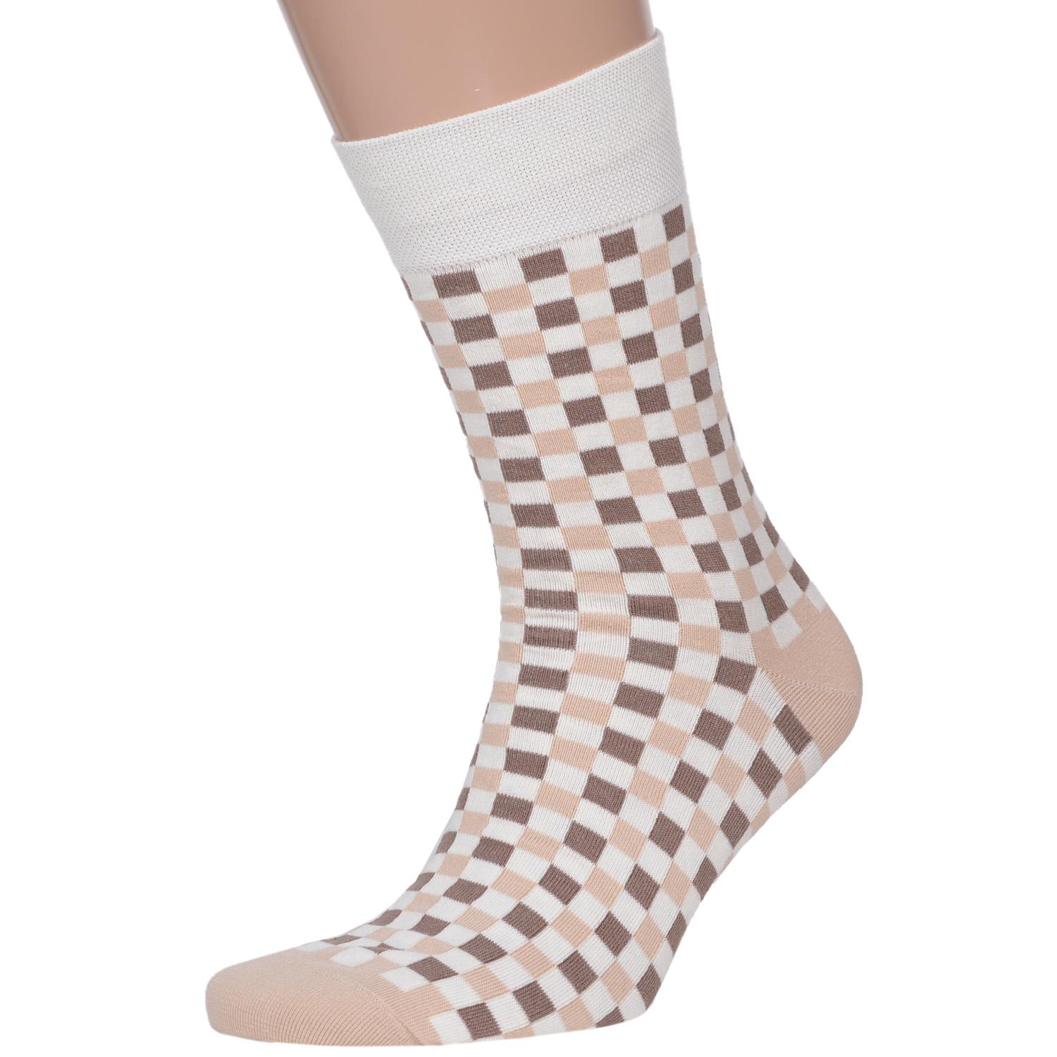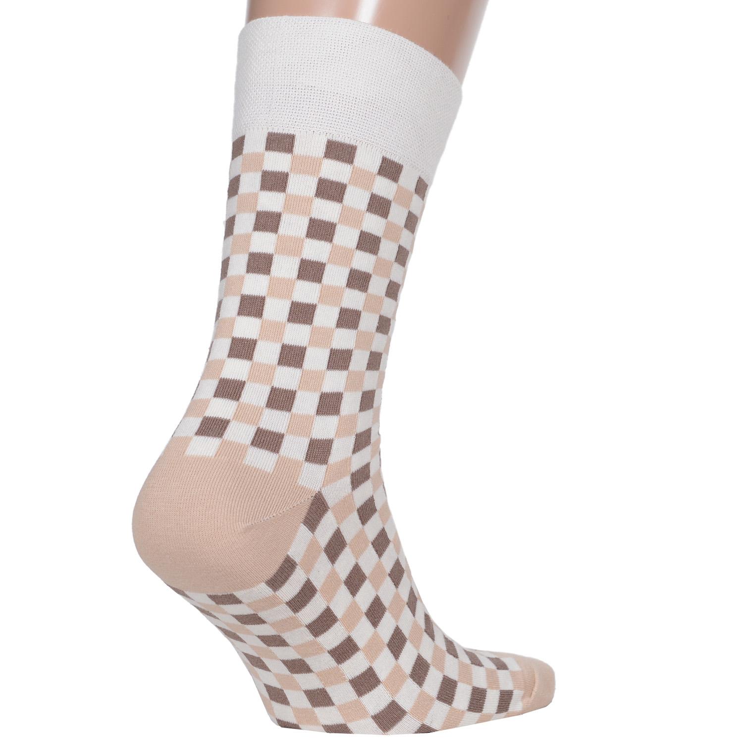 Круглогодичные средней длины мужские носки, цвет бежевый-кремовый, повседневные, шов обычный (не бесшовные), принт (рисунок): с узором, клетка, состав: 82% хлопок, 15% полиамид, 3% эластан, арт. Nm-353. Производитель «ИП Рыбалкин В.С., Московская область, г. Щелково» под брендом «Msclub».