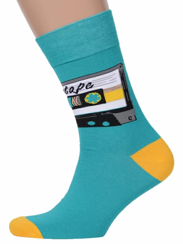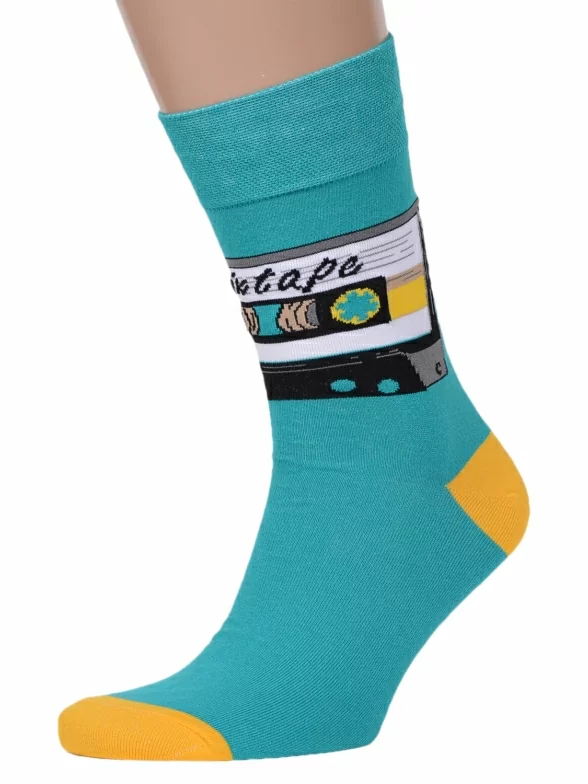 Круглогодичные средней длины мужские носки, цвет бирюзовый, повседневные, шов обычный (не бесшовные), принт (рисунок): ностальгия, крупные контрастные рисунки, состав: 82% хлопок, 15% полиамид, 3% эластан, арт. Nm-383. Производитель «ИП Рыбалкин В.С., Московская область, г. Щелково» под брендом «Msclub».