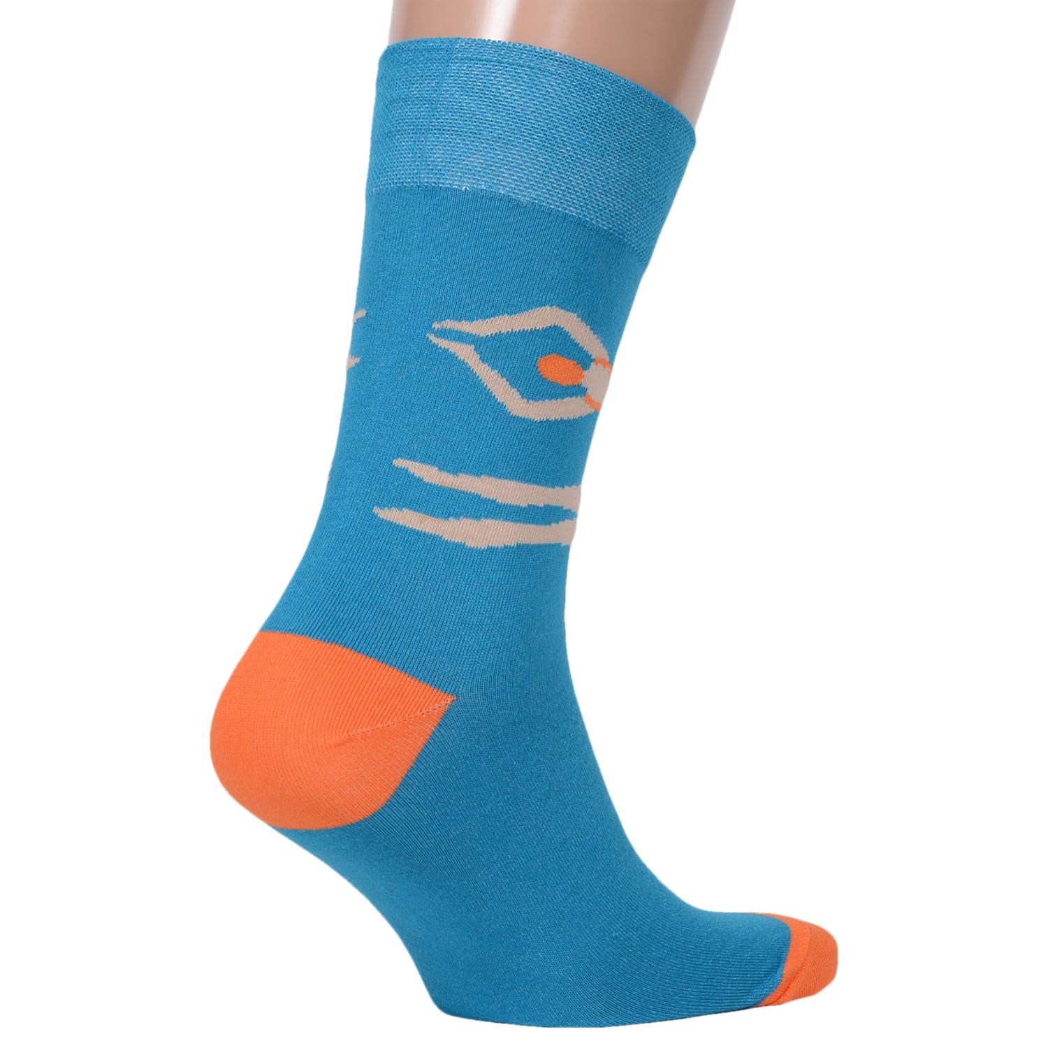 Круглогодичные средней длины мужские носки, цвет многоцветные (мультиколор)-голубой, повседневные, шов обычный (не бесшовные), принт (рисунок): крупные контрастные рисунки, с узором, люди, море, состав: 82% хлопок, 15% полиамид, 3% эластан, арт. Nm-395. Производитель «ИП Рыбалкин В.С., Московская область, г. Щелково» под брендом «Msclub».