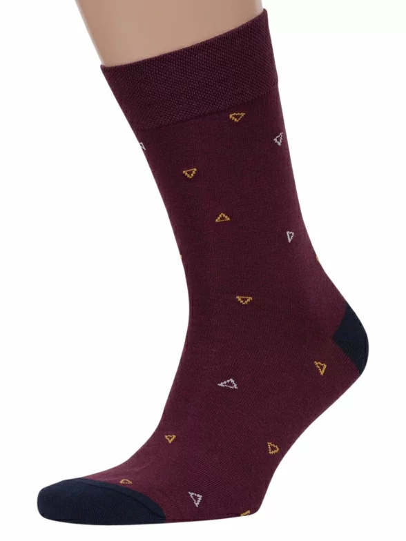 Круглогодичные средней длины мужские носки, цвет бордовый, классические, шов обычный (не бесшовные), принт (рисунок): мелкий принт, геометрия, с узором, состав: 82% хлопок, 15% полиамид, 3% эластан, арт. Nm-420. Производитель «ИП Рыбалкин В.С., Московская область, г. Щелково» под брендом «Msclub».