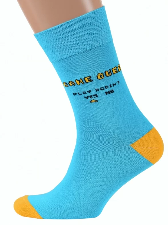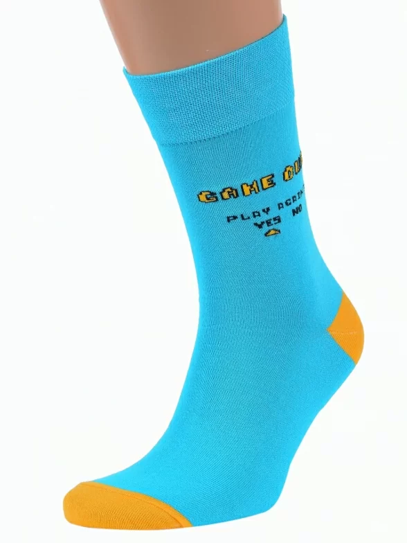Круглогодичные средней длины мужские носки, цвет голубой, повседневные, шов обычный (не бесшовные), принт (рисунок): игры, с узором, крупные контрастные рисунки, состав: 82% хлопок, 15% полиамид, 3% эластан, арт. Nm-516. Производитель «ИП Рыбалкин В.С., Московская область, г. Щелково» под брендом «Msclub».