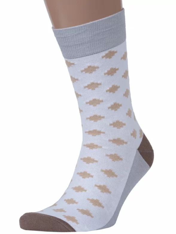 Круглогодичные средней длины мужские носки, цвет белый, классические, шов обычный (не бесшовные), принт (рисунок): с узором, мелкий принт, состав: 82% хлопок, 15% полиамид, 3% эластан, арт. Nm-527. Производитель «ИП Рыбалкин В.С., Московская область, г. Щелково» под брендом «Msclub».