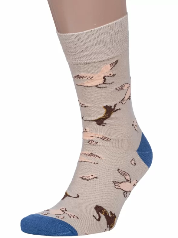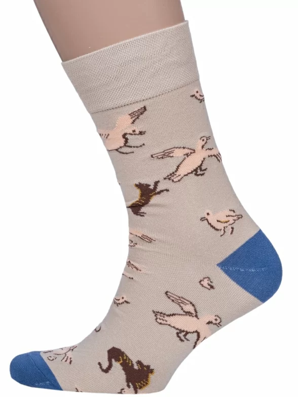 Круглогодичные средней длины мужские носки, цвет бежевый, повседневные, шов обычный (не бесшовные), принт (рисунок): с узором, животные, состав: 82% хлопок, 15% полиамид, 3% эластан, арт. Nm-547. Производитель «ИП Рыбалкин В.С., Московская область, г. Щелково» под брендом «Msclub».