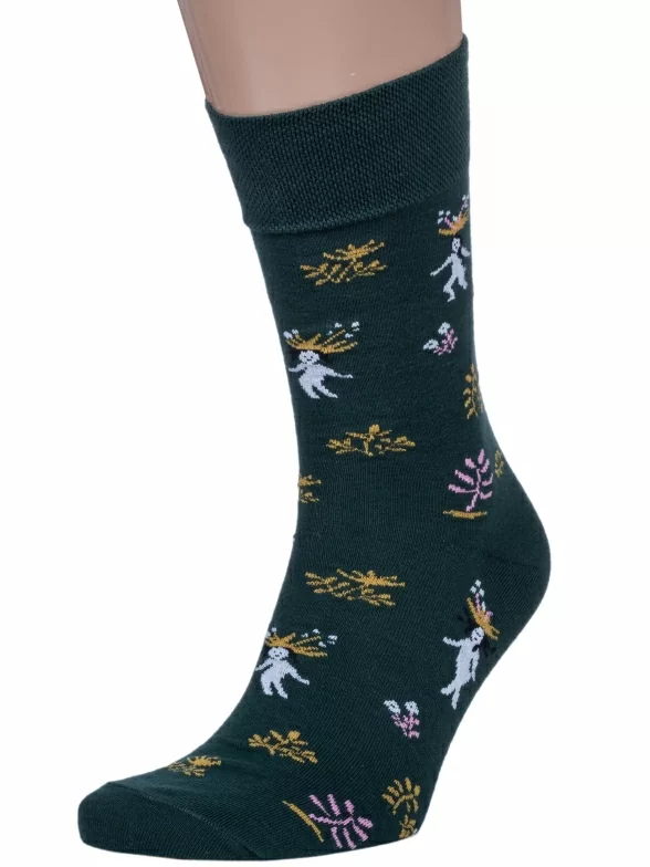 Круглогодичные средней длины мужские носки, цвет зеленый, повседневные, шов обычный (не бесшовные), принт (рисунок): с узором, люди, состав: 82% хлопок, 15% полиамид, 3% эластан, арт. Nm-549. Производитель «ИП Рыбалкин В.С., Московская область, г. Щелково» под брендом «Msclub».