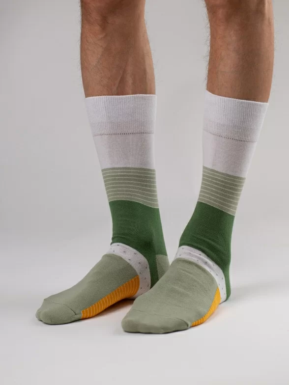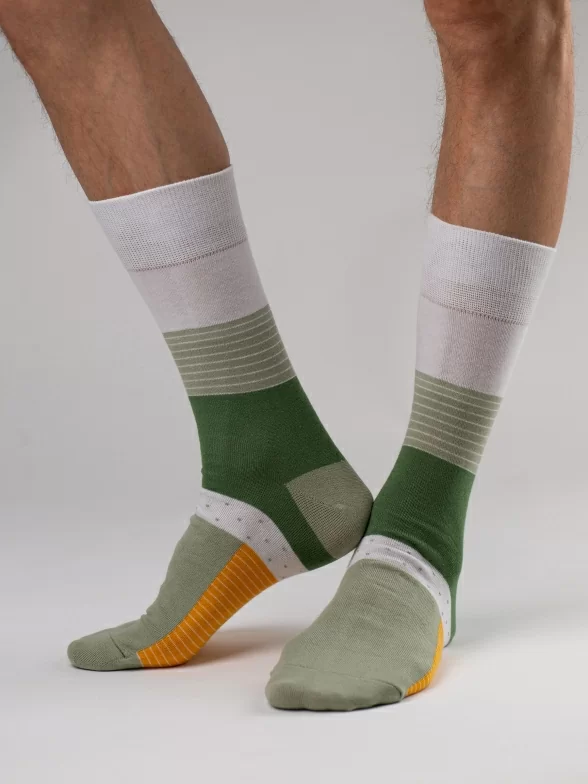 Круглогодичные средней длины мужские носки, цвет зеленый, повседневные, шов обычный (не бесшовные), принт (рисунок): полоски, горох / точка, состав: 82% хлопок, 15% полиамид, 3% эластан, арт. Nm-594. Производитель «ИП Рыбалкин В.С., Московская область, г. Щелково» под брендом «Msclub».