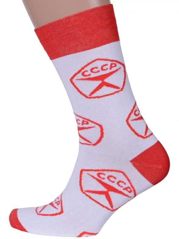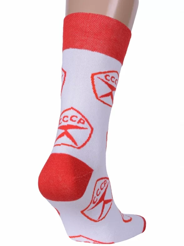 Круглогодичные средней длины мужские носки, цвет красный-белый, повседневные, шов обычный (не бесшовные), принт (рисунок): контрастные пятка / мысок / резинка, надписи, ностальгия, состав: 82% хлопок, 15% полиамид, 3% эластан, арт. Nm-652. Производитель «ИП Рыбалкин В.С., Московская область, г. Щелково» под брендом «Msclub».