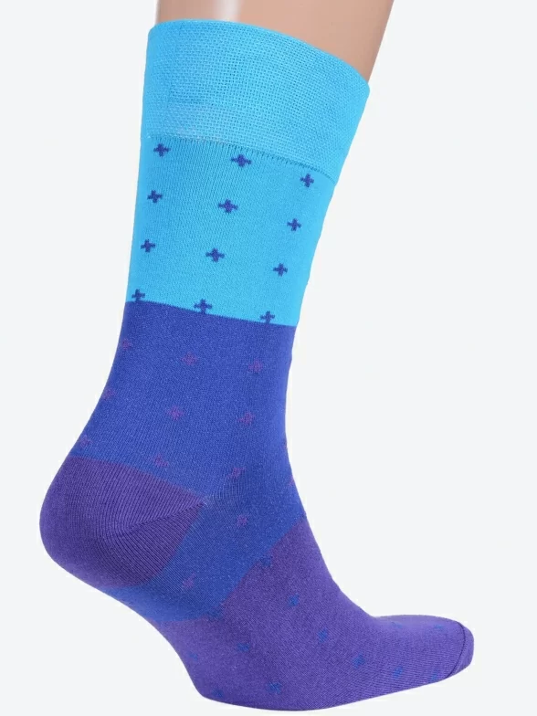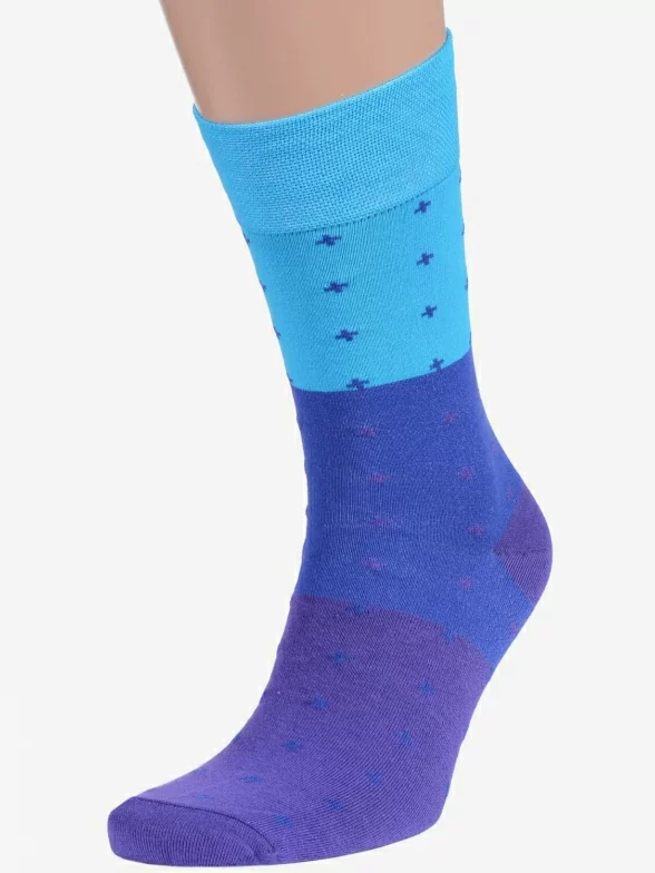 Круглогодичные средней длины мужские носки, цвет синий-многоцветные (мультиколор), повседневные, классические, шов обычный (не бесшовные), принт (рисунок): градиент, геометрия, с узором, состав: 82% хлопок, 15% полиамид, 3% эластан, арт. Nm-15. Производитель «ИП Рыбалкин В.С., Московская область, г. Щелково» под брендом «Msclub».
