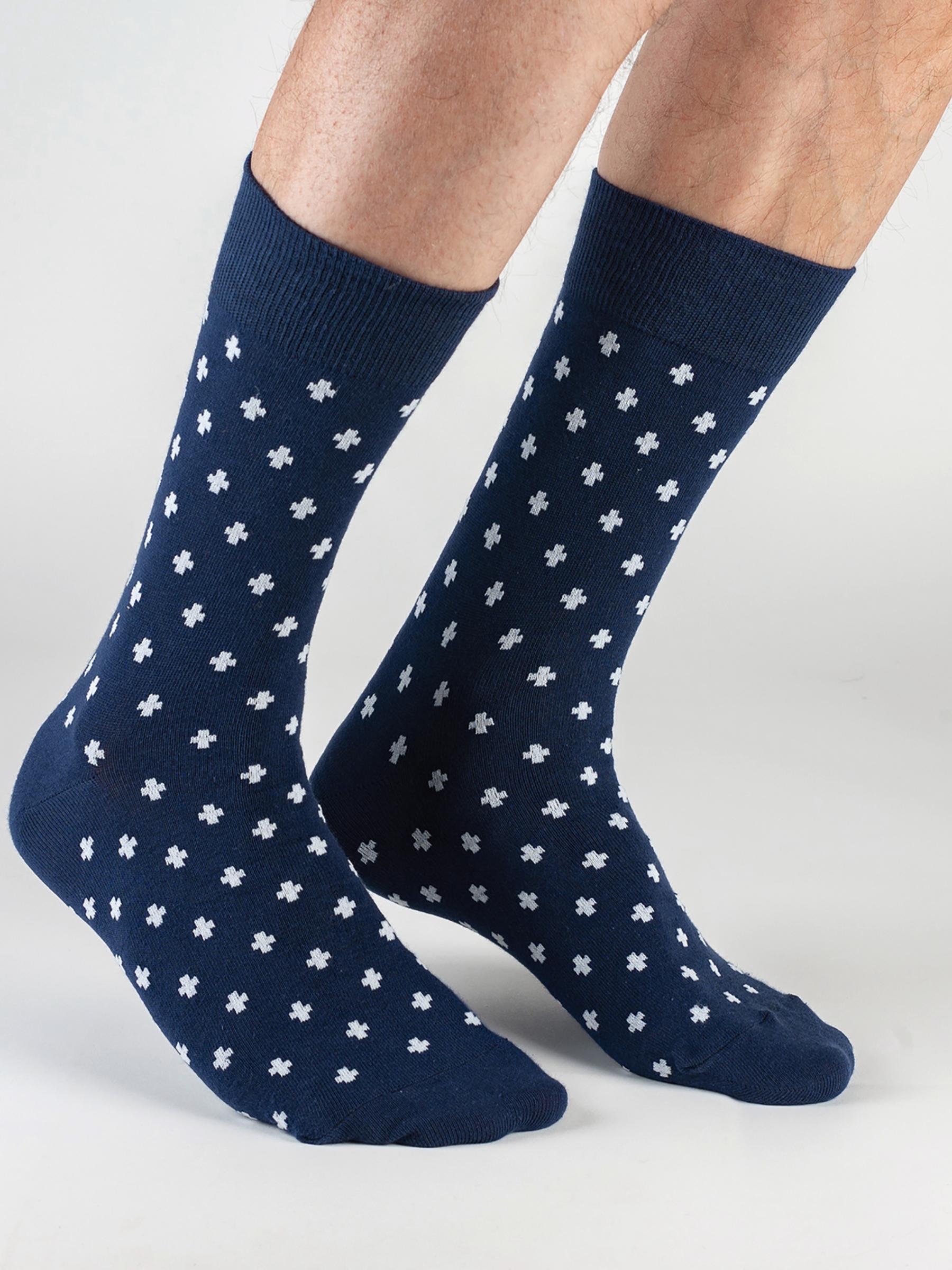 Круглогодичные средней длины мужские носки, цвет темно-синий, повседневные, шов обычный (не бесшовные), принт (рисунок): мелкий принт, геометрия, состав: 82% хлопок, 15% полиамид, 3% эластан, арт. МА-НМ17. Производитель «ООО «Чулочно-носочная фабрика «Нева-Сокс», Ленинградская обл, Россия» под брендом «Нева-сокс».