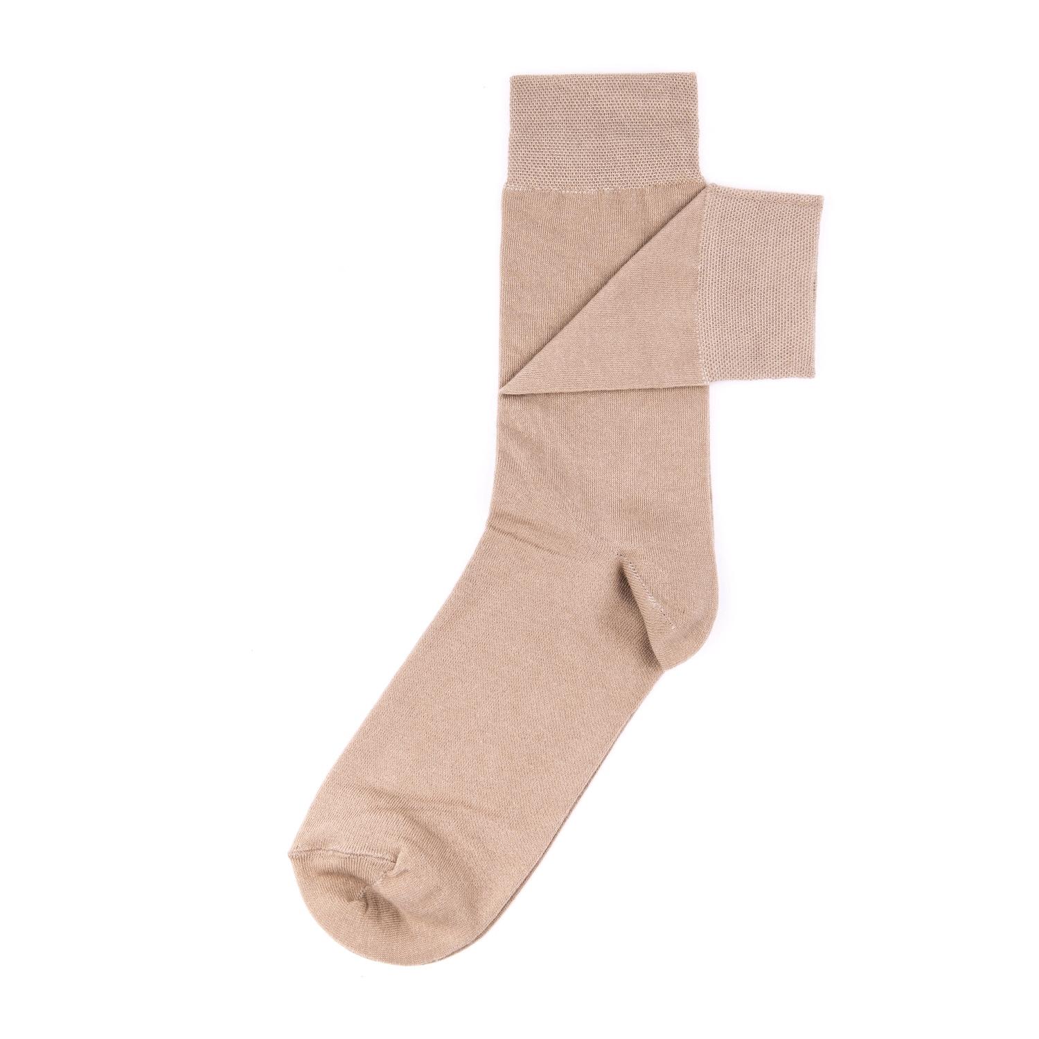 Круглогодичные средней длины мужские носки, цвет бежевый, классические, шов обычный (не бесшовные), принт (рисунок): однотонный, без рисунков/узоров, состав: 80% хлопок, 17% полиамид, 3% лайкра (эластан), арт. В-121. Производитель «ООО «Чулочно-носочная фабрика «Нева-Сокс», Ленинградская обл, Россия» под брендом «Нева-сокс».