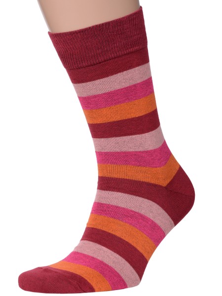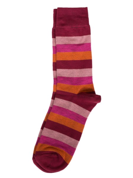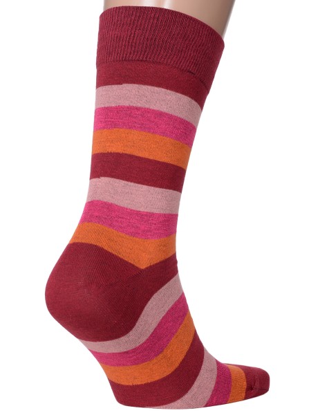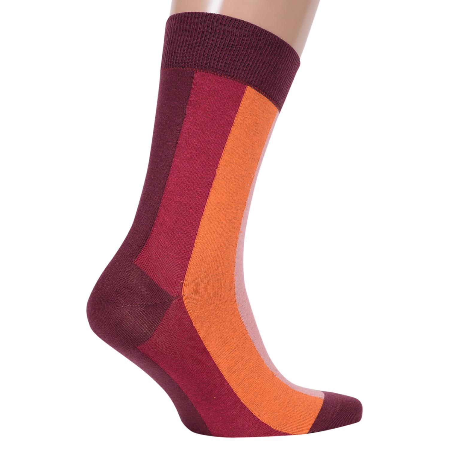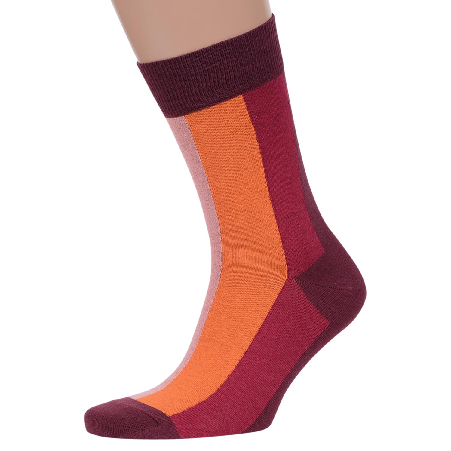 Круглогодичные средней длины мужские носки, цвет многоцветные (мультиколор)-бордовый, классические, шов обычный (не бесшовные), принт (рисунок): полоски, с узором, состав: 80% хлопок, 17% полиамид, 3% лайкра (эластан), арт. MAG-20. Производитель «ООО «Чулочно-носочная фабрика «Нева-Сокс», Ленинградская обл, Россия» под брендом «Нева-сокс».