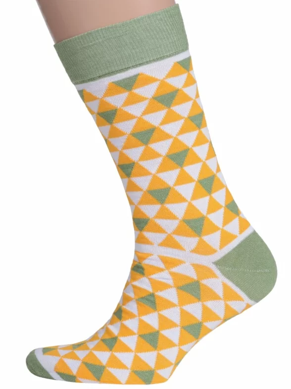 Хлопковые мужские носки с неповторимым стилем и яркой расцветкой. Модель фиксируется широкой эластичной резинкой. Изделия после стирки не скатываются, не теряют яркость цвета и сохраняют форму. Отлично сочетаются с джинсами и другой повседневной одеждой.