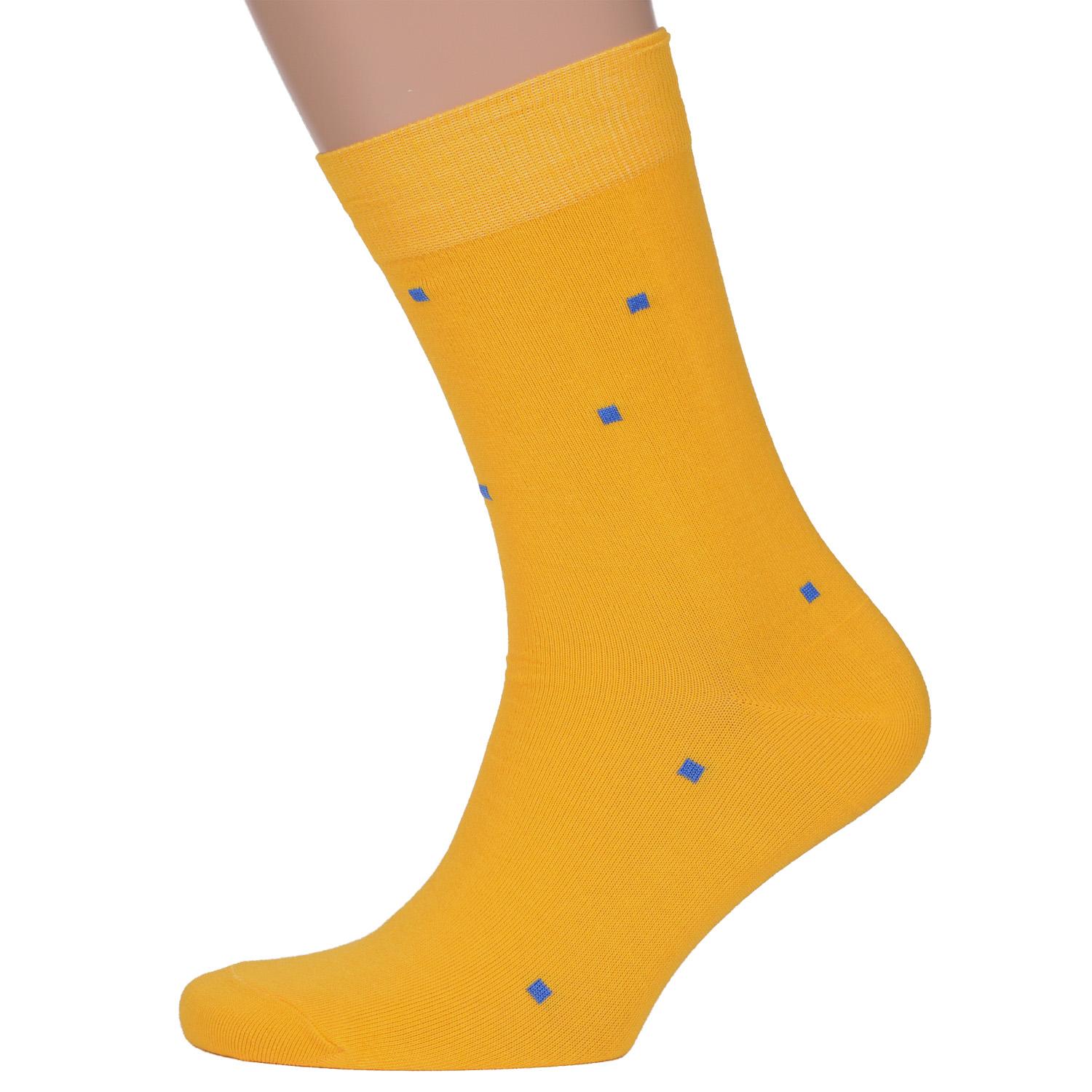 Круглогодичные средней длины мужские носки, цвет желтый, классические, шов обычный (не бесшовные), принт (рисунок): горох / точка, с узором, состав: 80% хлопок, 17% полиамид, 3% лайкра (эластан), арт. М-2. Производитель «ООО «Чулочно-носочная фабрика «Нева-Сокс», Ленинградская обл, Россия» под брендом «Нева-сокс».