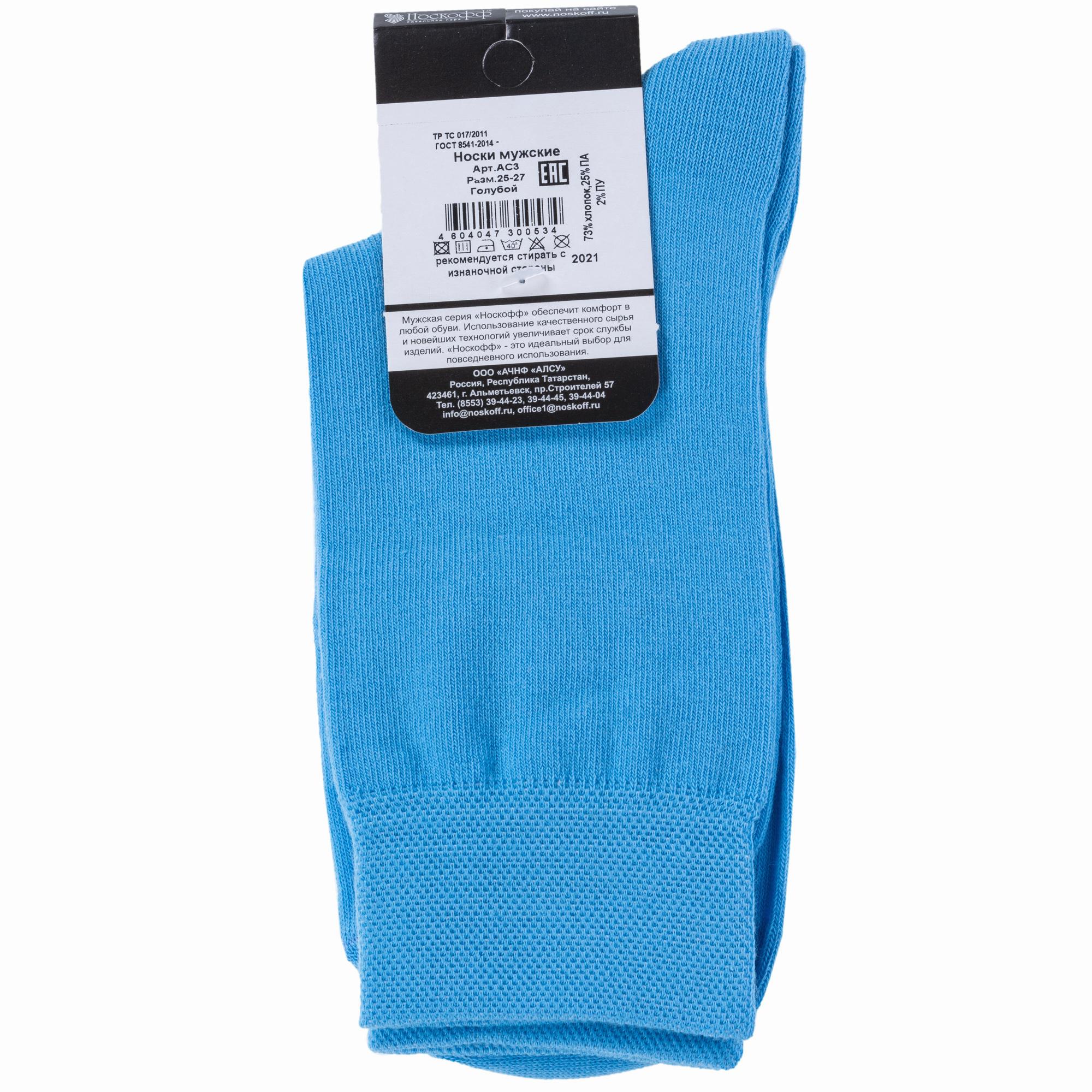 Круглогодичные средней длины мужские носки, цвет голубой, классические, шов обычный (не бесшовные), принт (рисунок): однотонный, без рисунков/узоров, состав: 73% хлопок, 25% полиамид, 2% полиуретан (эластан), арт. АС3. Производитель «Носкофф» Россия под брендом «Носкофф (алсу)».