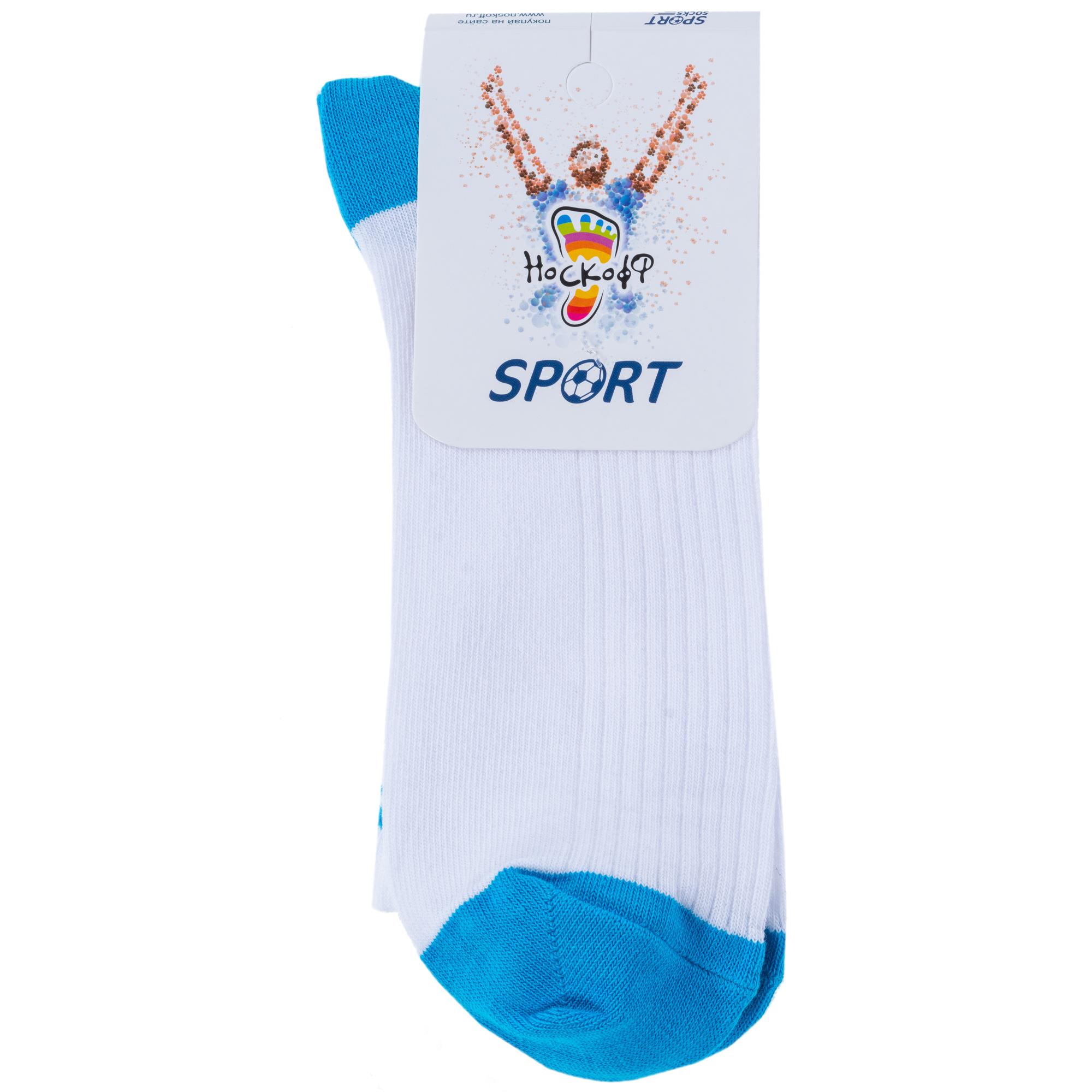Круглогодичные средней длины мужские носки, цвет белый, спортивные, шов обычный (не бесшовные), принт (рисунок): контрастные пятка / мысок / резинка, в рубчик, с узором, состав: 63% хлопок, 23% полиамид, 14% полиуретан (эластан), арт. НМ50. Производитель «Носкофф» Россия под брендом «Носкофф (алсу)».