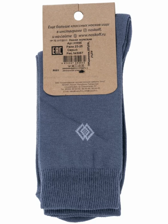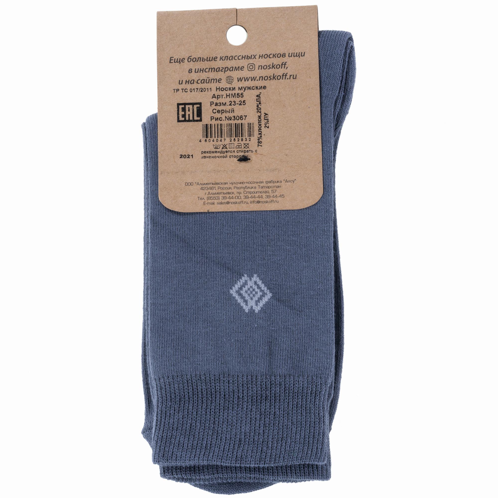 Круглогодичные средней длины мужские носки, цвет серый, классические, шов обычный (не бесшовные), принт (рисунок): небольшой рисунок, однотонный, состав: 78% хлопок, 20% полиамид, 2% полиуретан (эластан), арт. НМ55. Производитель «Носкофф» Россия под брендом «Носкофф (алсу)».