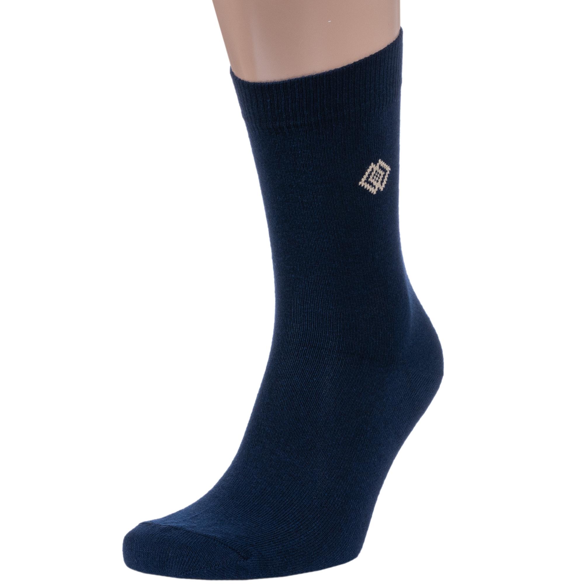 Круглогодичные средней длины мужские носки, цвет темно-синий, классические, шов обычный (не бесшовные), принт (рисунок): небольшой рисунок, однотонный, состав: 78% хлопок, 20% полиамид, 2% полиуретан (эластан), арт. НМ55. Производитель «Носкофф» Россия под брендом «Носкофф (алсу)».