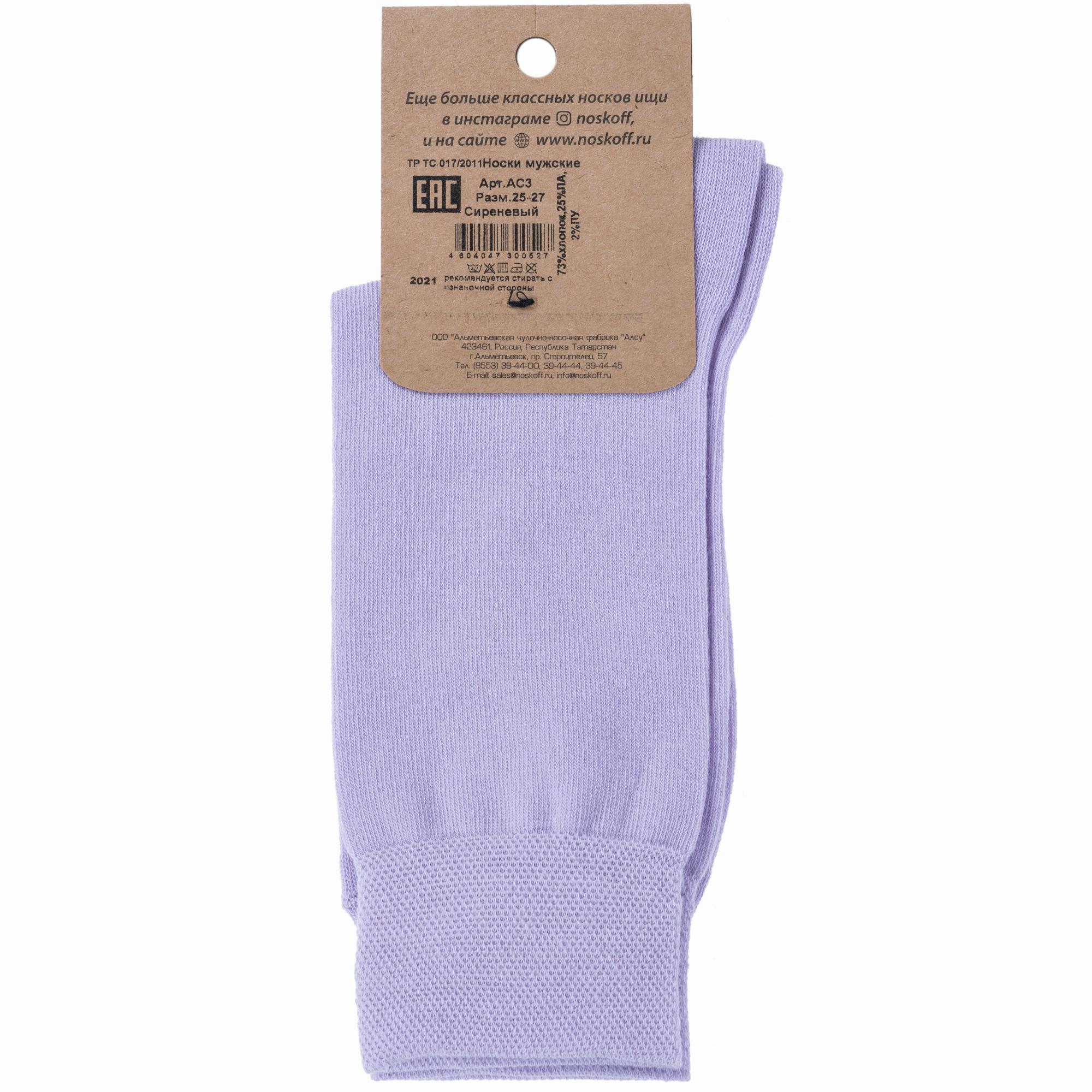 Круглогодичные средней длины мужские носки, цвет сиреневый, классические, шов обычный (не бесшовные), принт (рисунок): однотонный, без рисунков/узоров, состав: 73% хлопок, 25% полиамид, 2% полиуретан (эластан), арт. АС3. Производитель «Носкофф» Россия под брендом «Носкофф (алсу)».