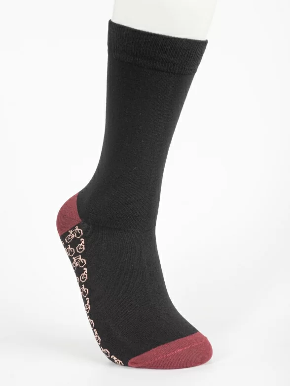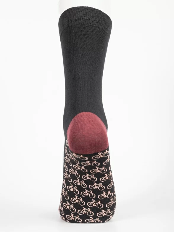 Круглогодичные средней длины мужские носки, цвет черный, классические, шов обычный (не бесшовные), принт (рисунок): транспорт, велосипед, контрастные пятка/мысок/резинка, состав: 97% хлопок, 2% полиамид, 1% лайкра, арт. PM495-1. Производитель «Oemen» Китай под брендом «Oemen».
