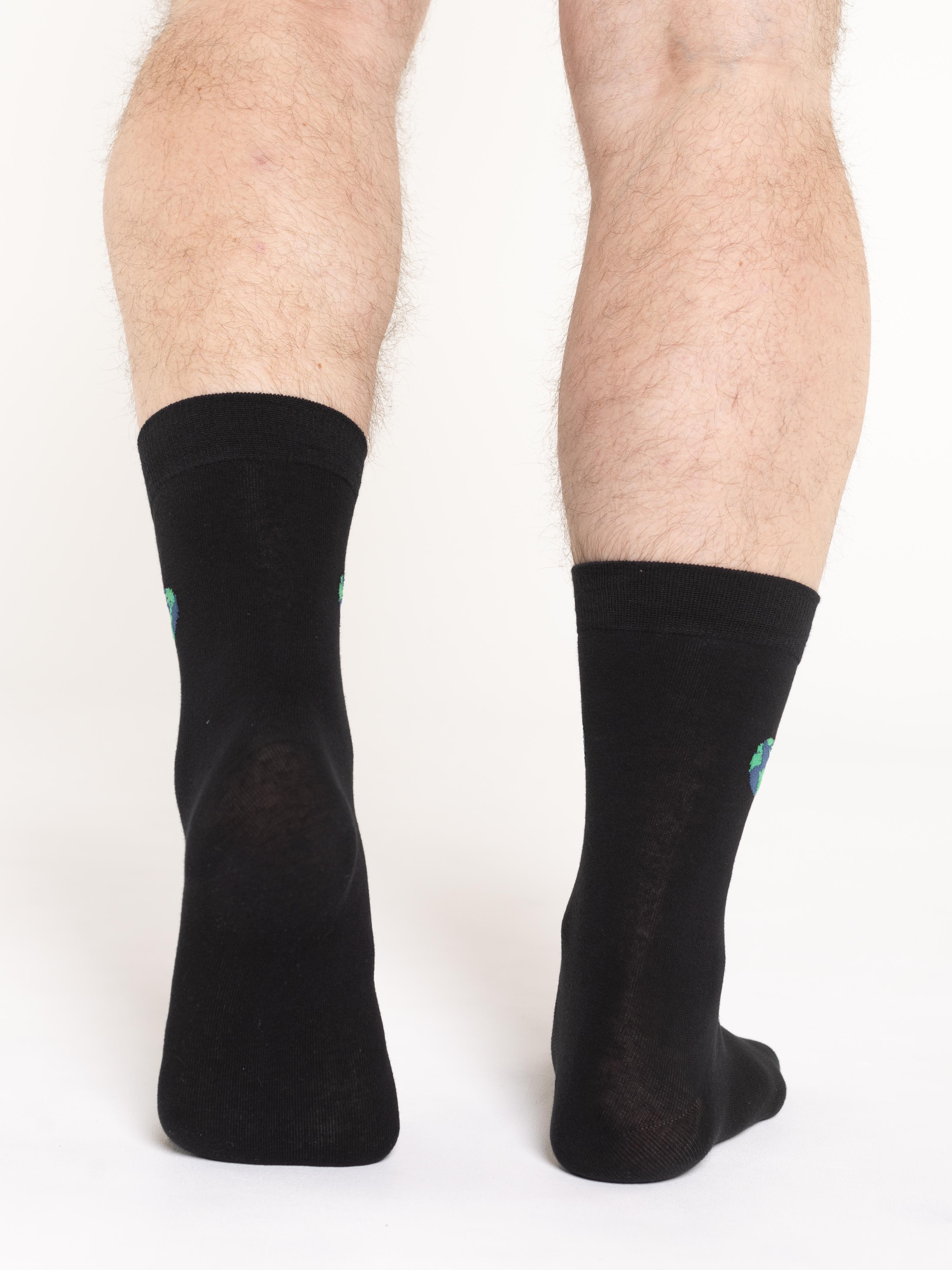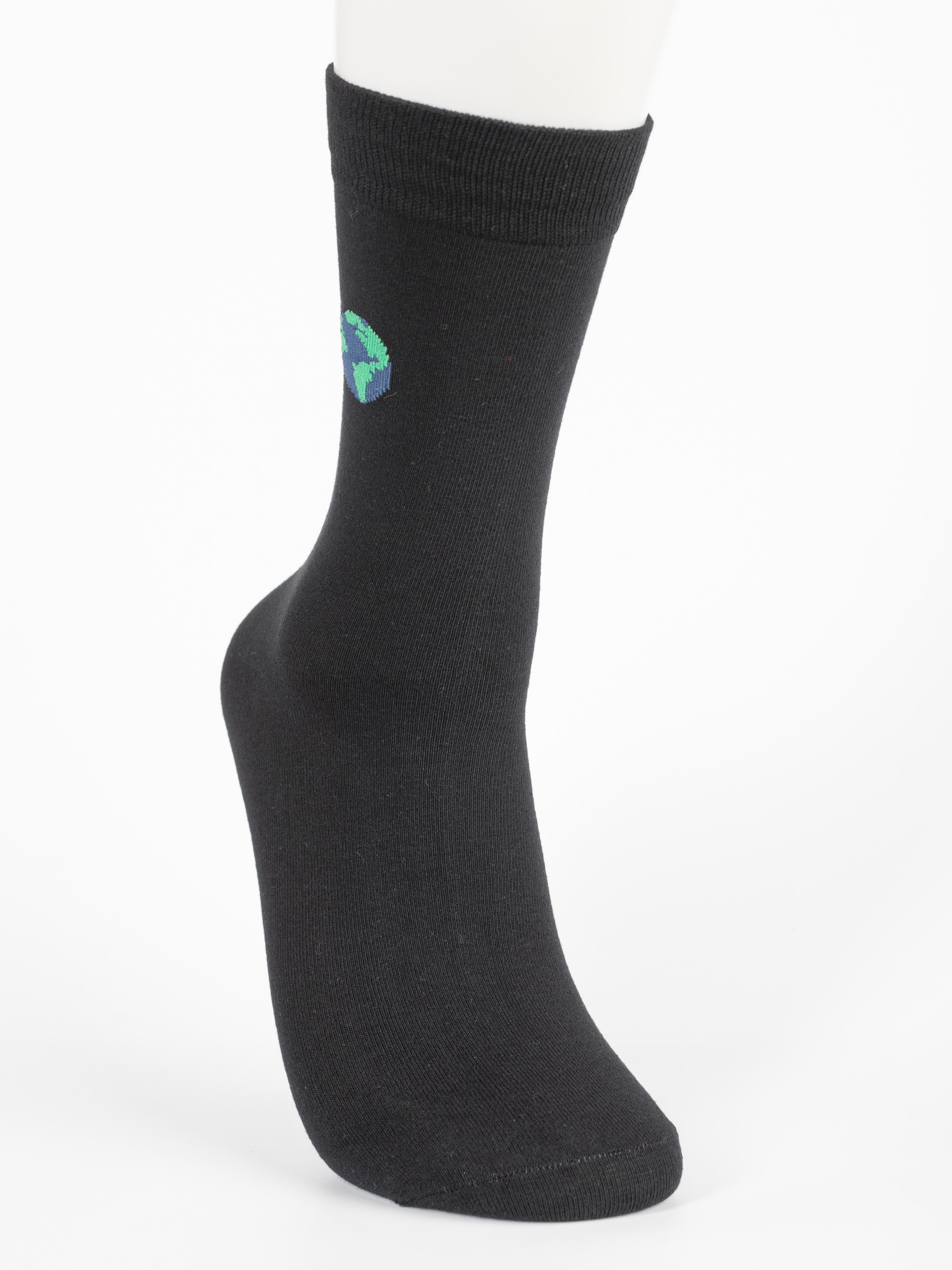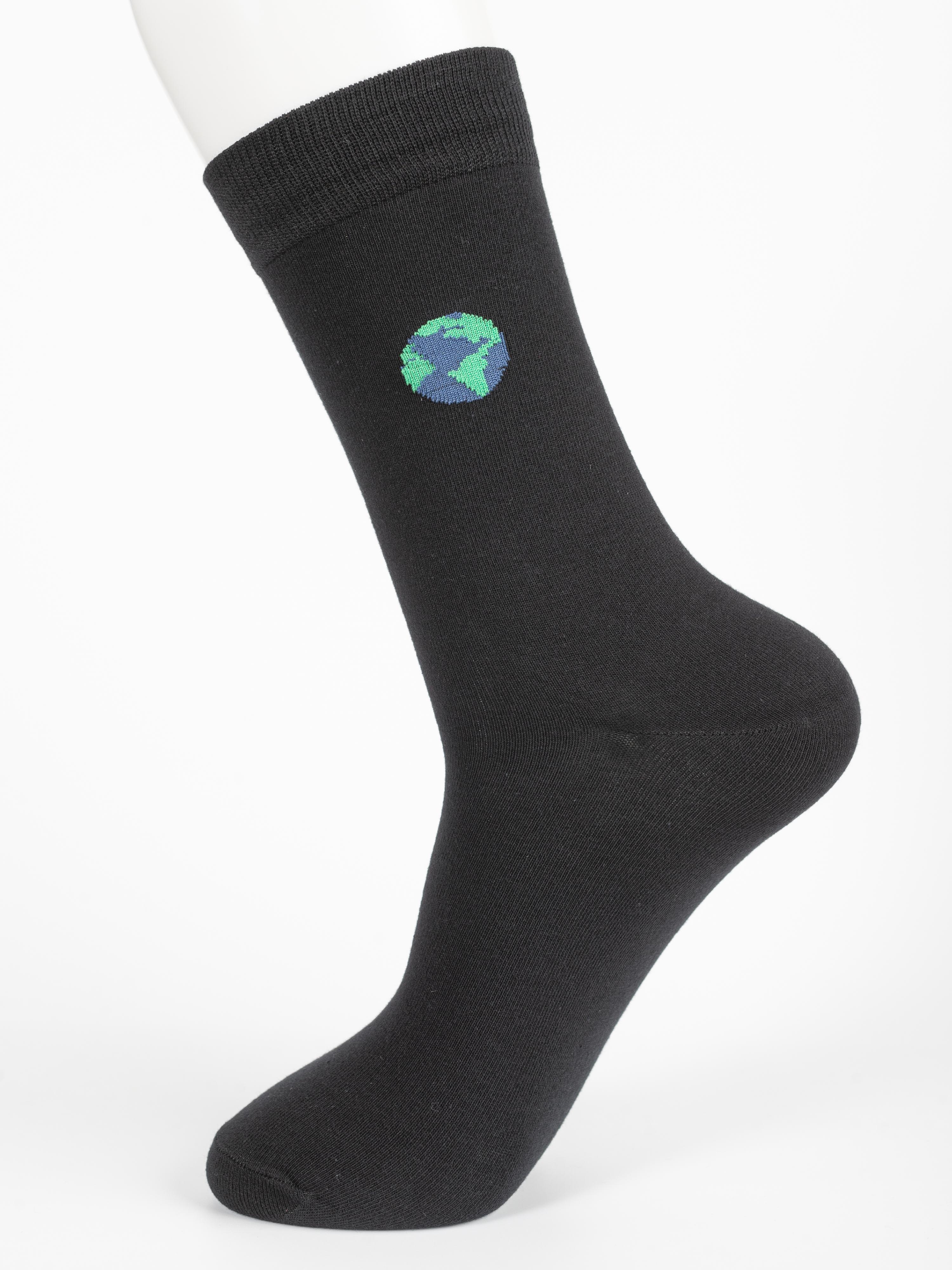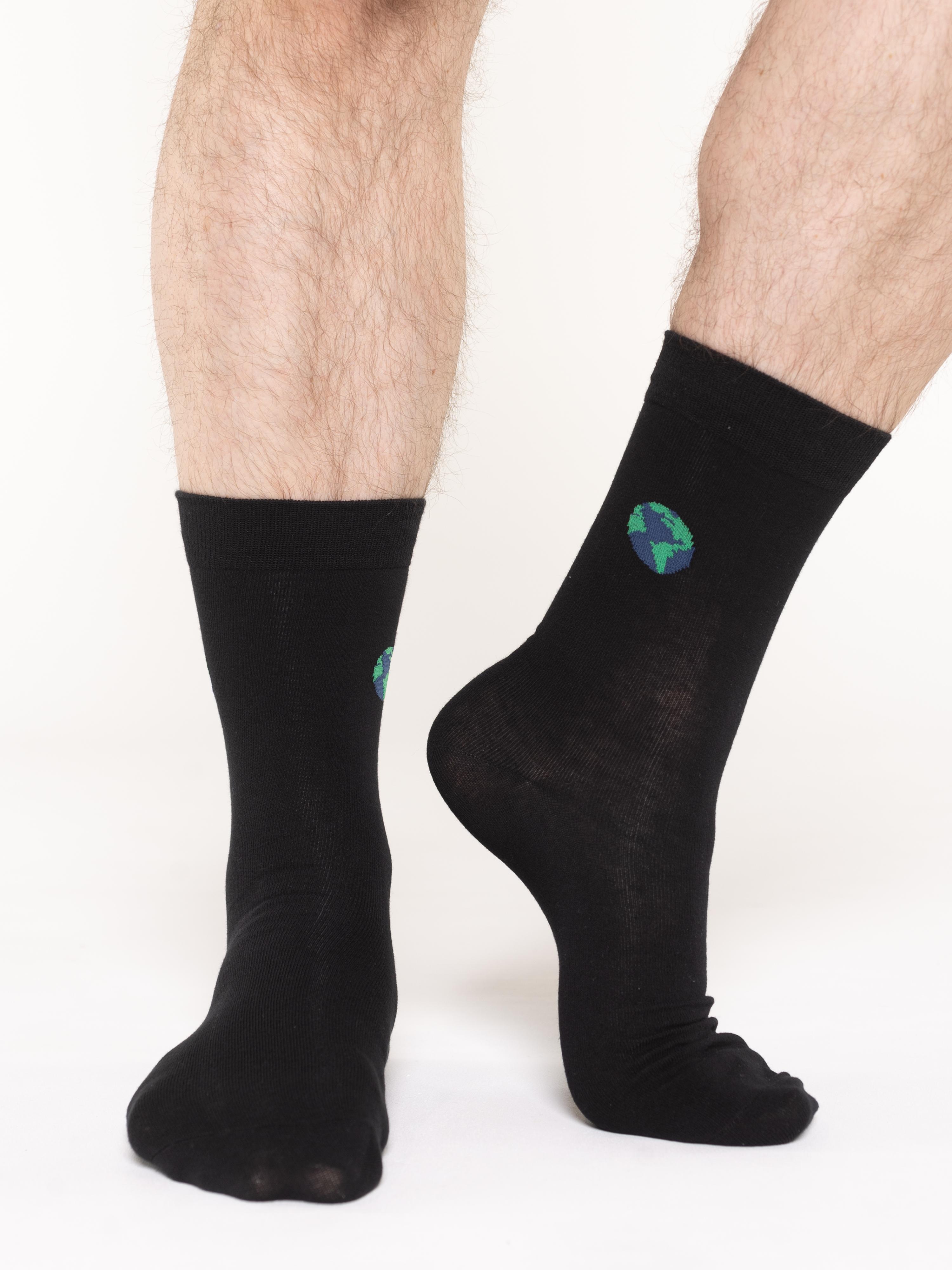 Круглогодичные средней длины мужские носки, цвет черный, классические, шов обычный (не бесшовные), принт (рисунок): космос, планета Земля, состав: 97% хлопок, 2% полиамид, 1% лайкра, арт. PM479. Производитель «Oemen» Китай под брендом «Oemen».