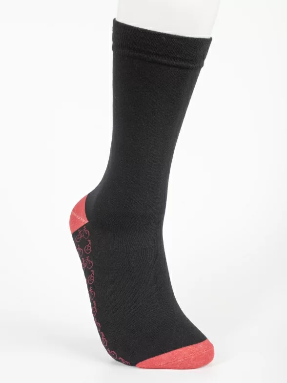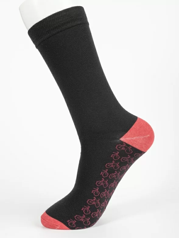 Круглогодичные средней длины мужские носки, цвет красный-черный, классические, шов обычный (не бесшовные), принт (рисунок): транспорт, велосипед, контрастные пятка/мысок/резинка, состав: 97% хлопок, 2% полиамид, 1% лайкра, арт. PM495-2. Производитель «Oemen» Китай под брендом «Oemen».