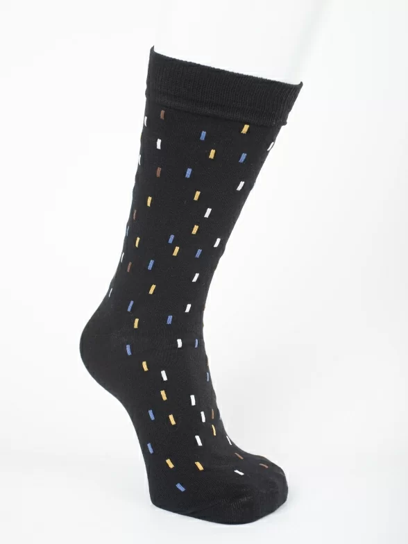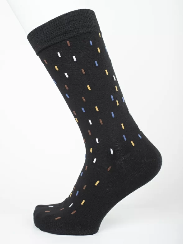 Круглогодичные средней длины мужские носки, цвет черный, классические, шов обычный (не бесшовные), принт (рисунок): геометрический, состав: 97% хлопок, 2% полиамид, 1% лайкра, арт. PM250. Производитель «Oemen» Китай под брендом «Oemen».