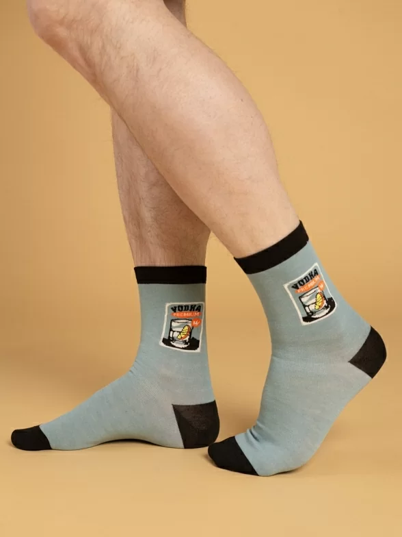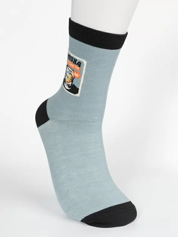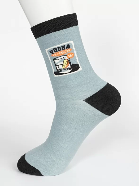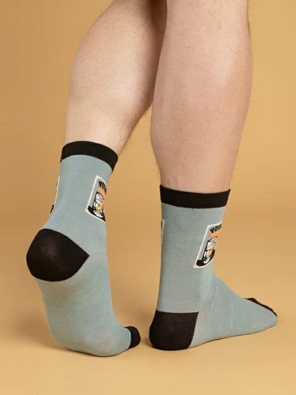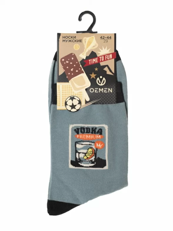 Круглогодичные укороченные мужские носки, цвет серый, шов обычный (не бесшовные), принт (рисунок): контрастные пятка/мысок/резинка, дерзости / вредные привычки, состав: 80% хлопок, 17% полиамид, 3% эластан, арт. PM458. Производитель «Oemen» Китай под брендом «Oemen».