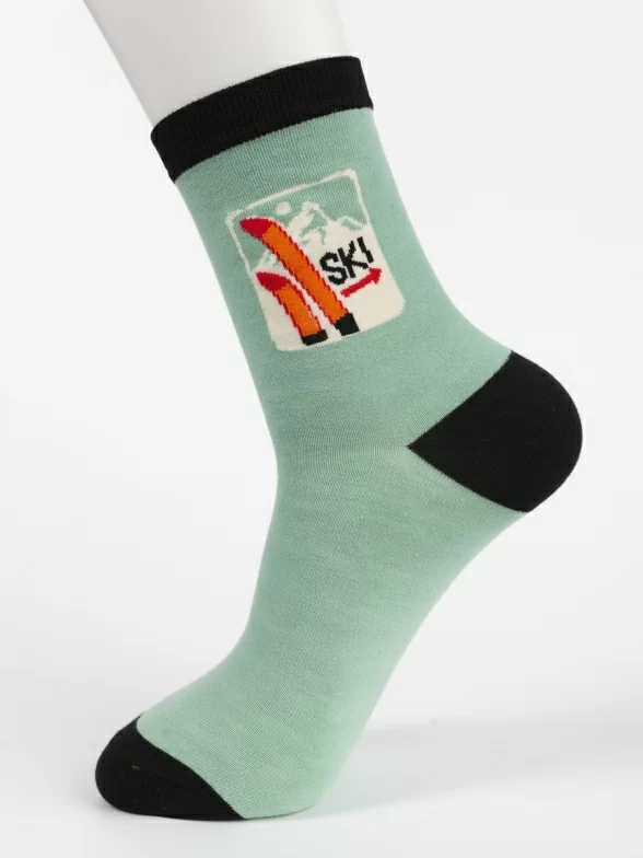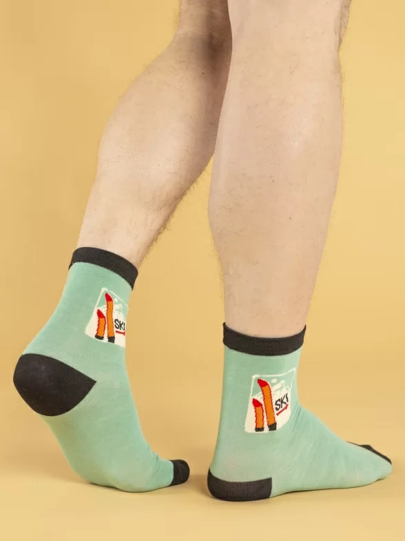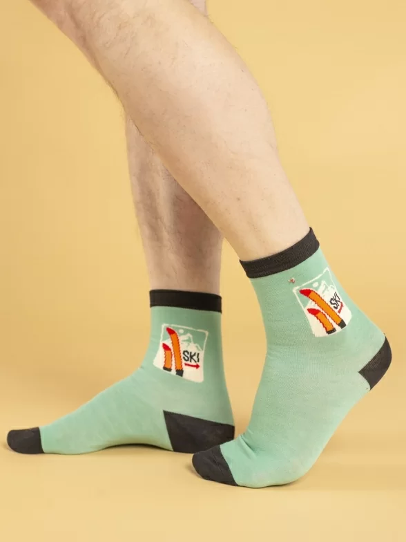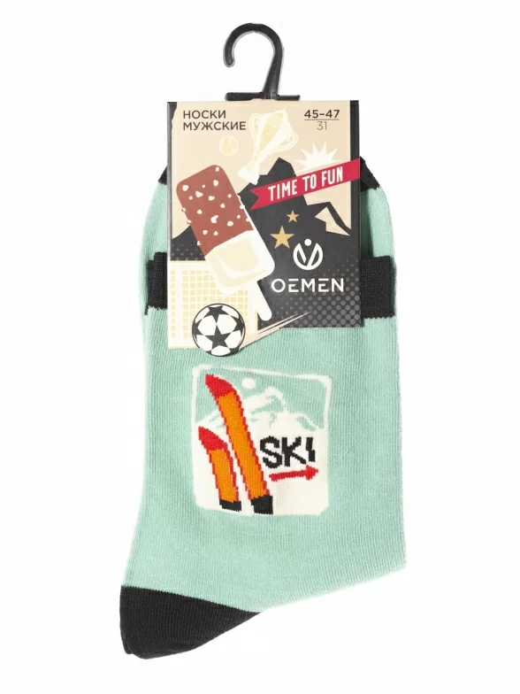 Круглогодичные укороченные мужские носки, цвет зеленый, шов обычный (не бесшовные), принт (рисунок): спортивные, контрастные пятка/мысок/резинка, состав: 80% хлопок, 17% полиамид, 3% эластан, арт. PM460. Производитель «Oemen» Китай под брендом «Oemen».