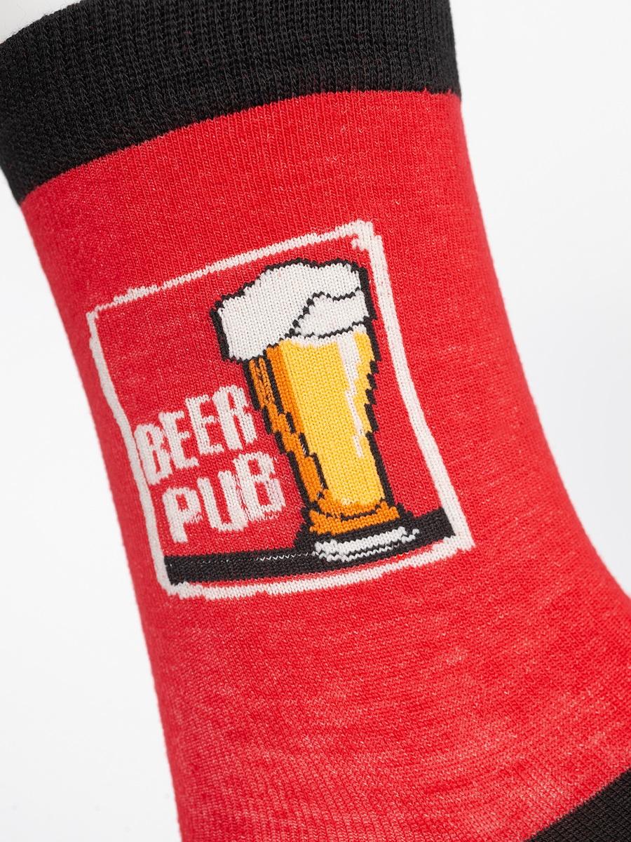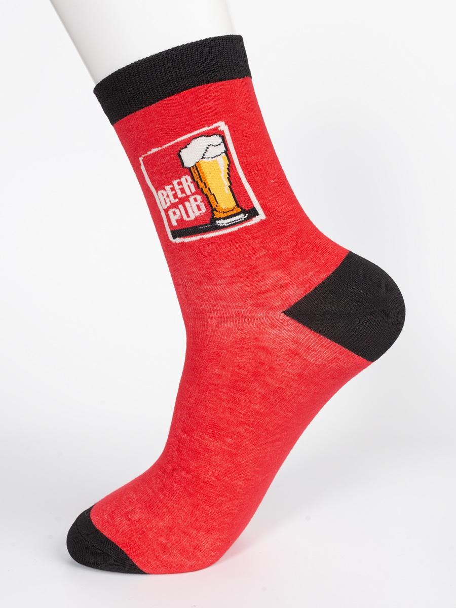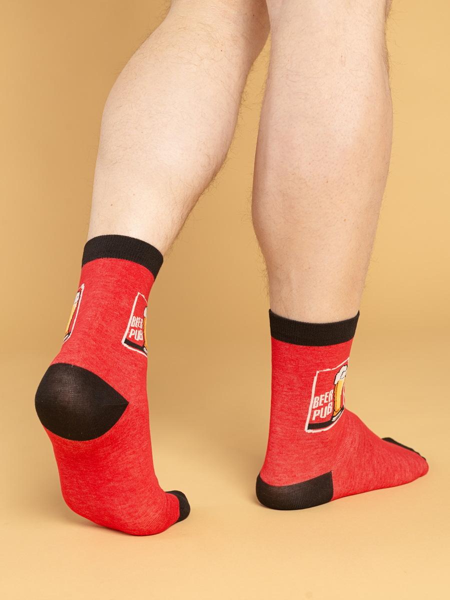 Круглогодичные укороченные мужские носки, цвет красный, шов обычный (не бесшовные), принт (рисунок): контрастные пятка/мысок/резинка, дерзости / вредные привычки, состав: 80% хлопок, 17% полиамид, 3% эластан, арт. PM461. Производитель «Oemen» Китай под брендом «Oemen».