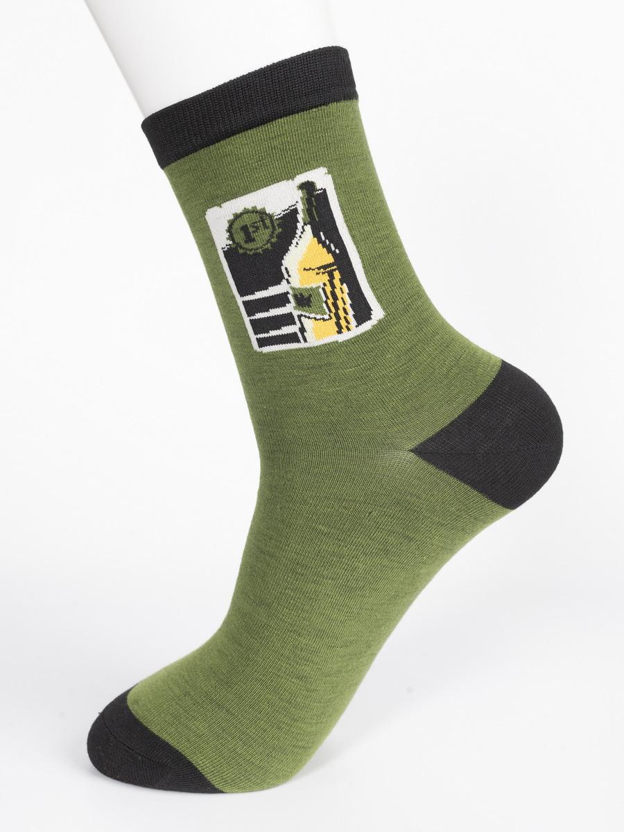 Круглогодичные укороченные мужские носки, цвет хаки, шов обычный (не бесшовные), принт (рисунок): контрастные пятка/мысок/резинка, дерзости / вредные привычки, состав: 80% хлопок, 17% полиамид, 3% эластан, арт. PM464. Производитель «Oemen» Китай под брендом «Oemen».