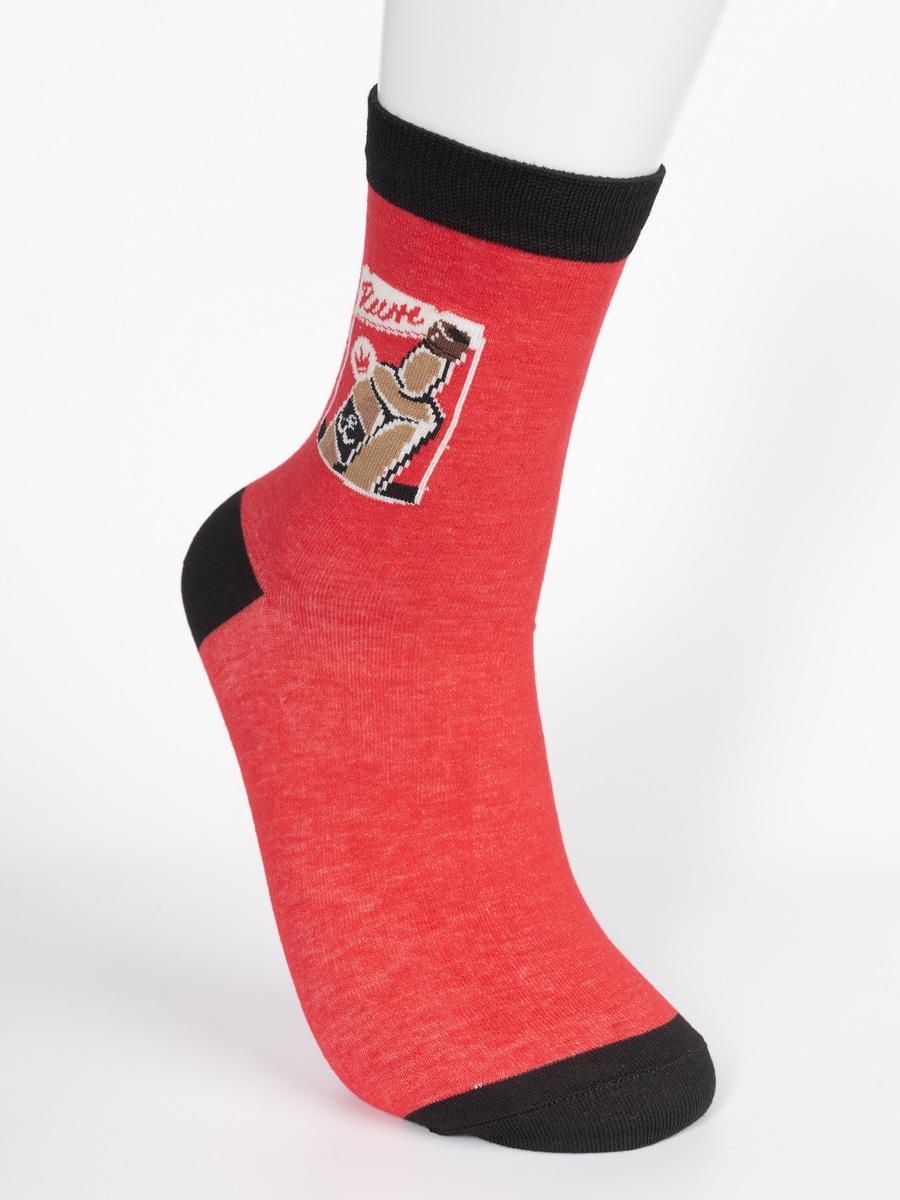 Круглогодичные укороченные мужские носки, цвет красный, шов обычный (не бесшовные), принт (рисунок): контрастные пятка/мысок/резинка, дерзости / вредные привычки, состав: 80% хлопок, 17% полиамид, 3% эластан, арт. PM465. Производитель «Oemen» Китай под брендом «Oemen».