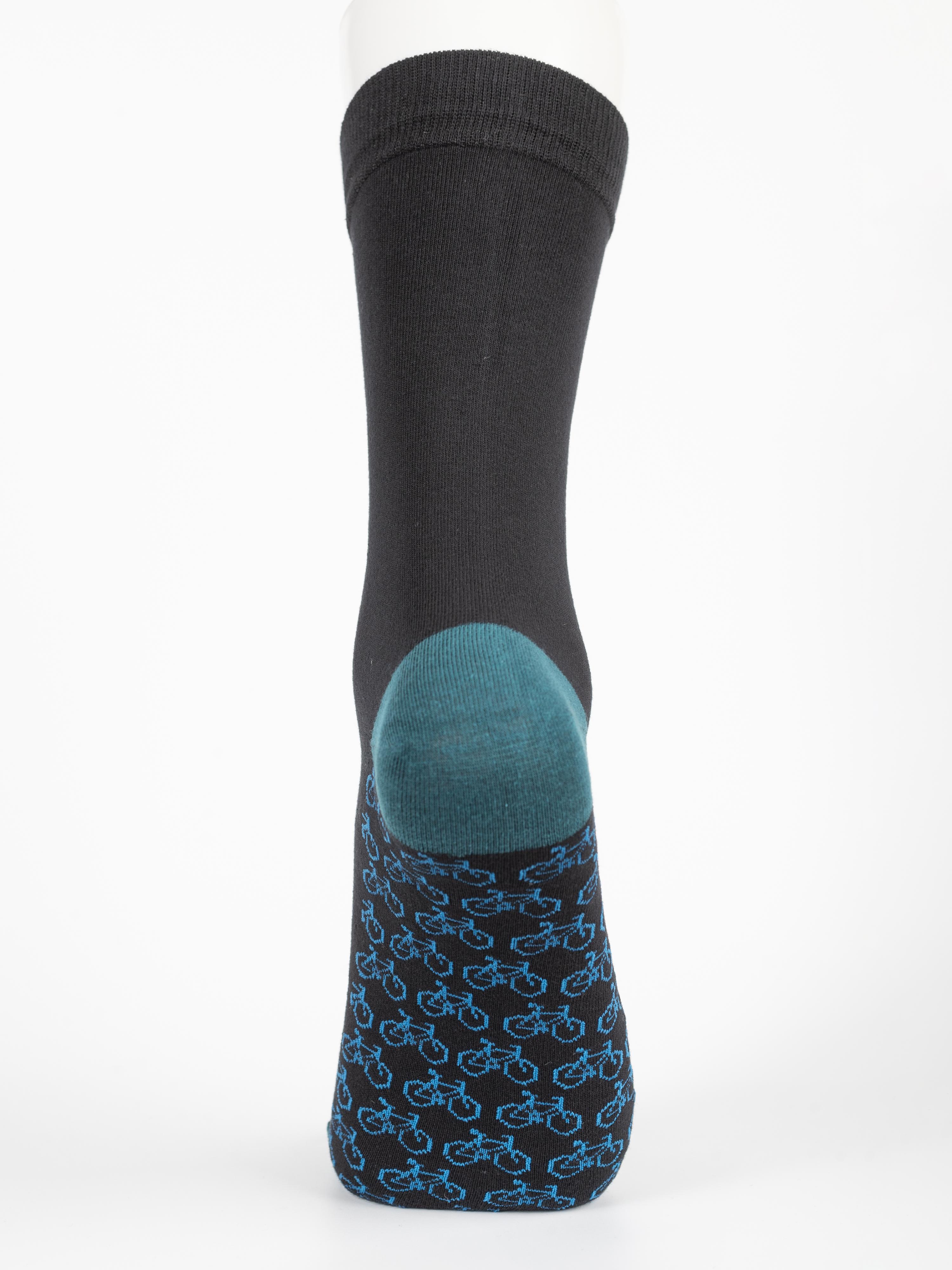 Круглогодичные средней длины мужские носки, цвет синий-черный, классические, шов обычный (не бесшовные), принт (рисунок): транспорт, велосипед, контрастные пятка/мысок/резинка, состав: 97% хлопок, 2% полиамид, 1% лайкра, арт. PM495-3. Производитель «Oemen» Китай под брендом «Oemen».