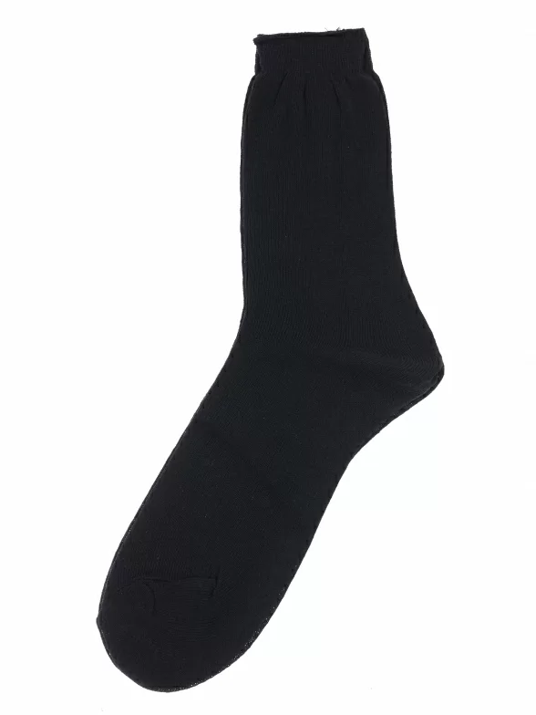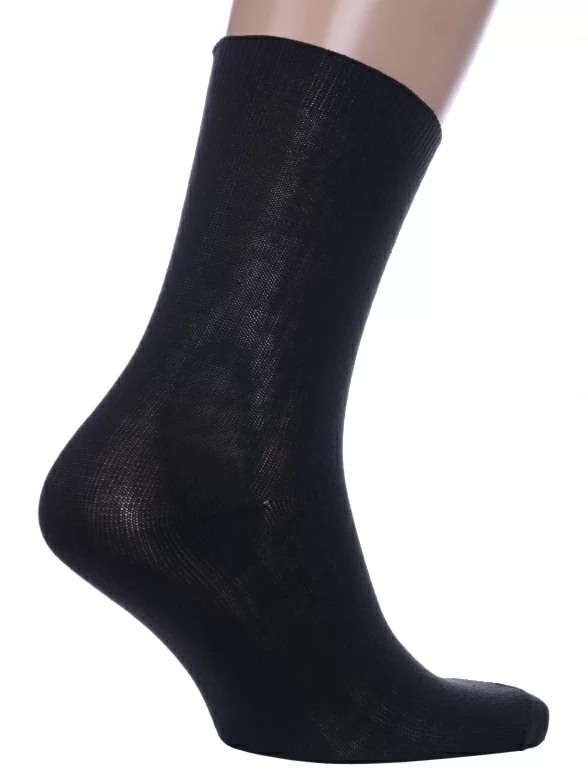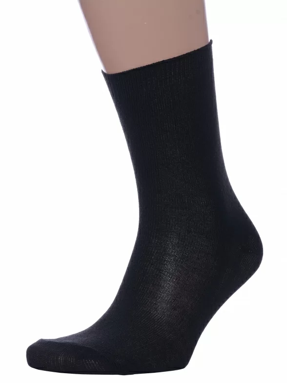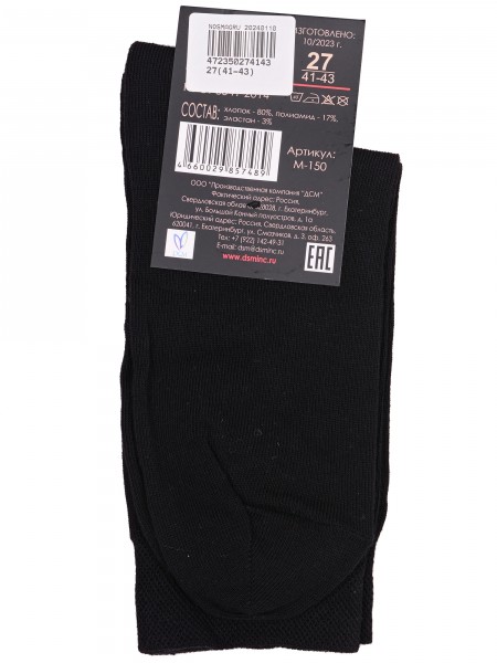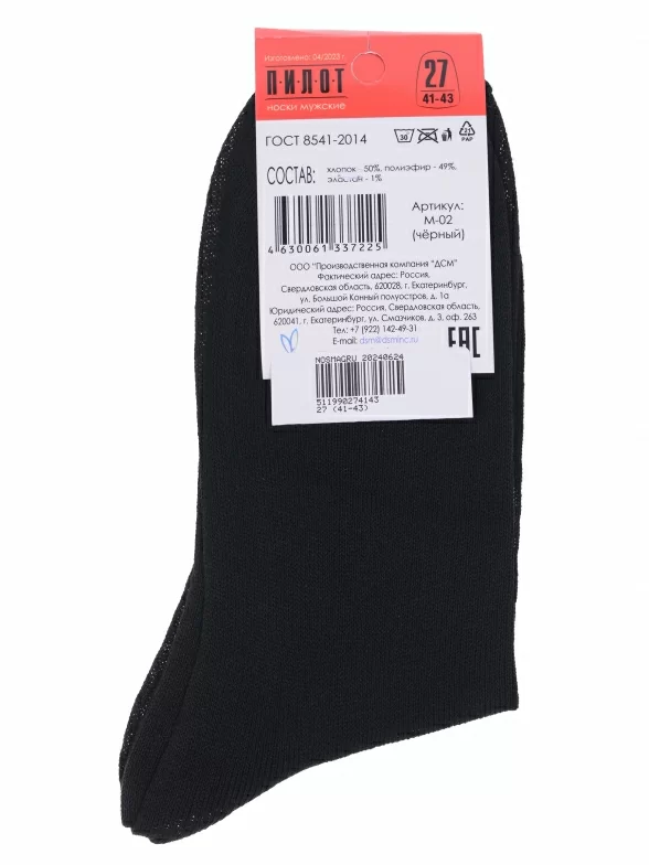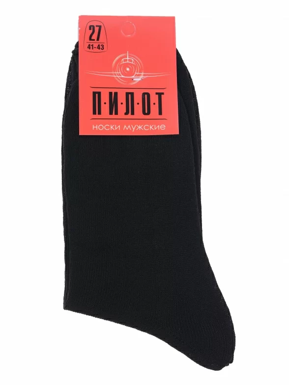 Круглогодичные средней длины мужские носки, цвет черный, классические, шов обычный (не бесшовные), принт (рисунок): однотонный, без рисунков/узоров, состав: 50% хлопок, 49% полиэфир, 1% эластан, арт. М-02. Производитель «ООО Производственная компания "ДСМ", Россия» под брендом «Пилот».