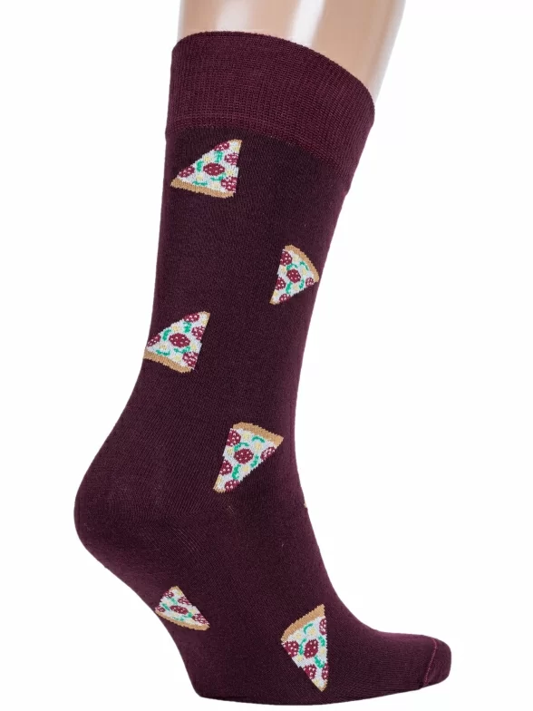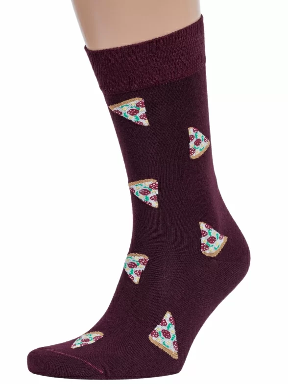 Круглогодичные средней длины мужские носки, цвет бордовый, повседневные, шов кеттельный (бесшовная технология), принт (рисунок): еда и напитки, с узором, состав: 78% хлопок, 20% полиамид, 2% эластан, арт. М3-13048. Производитель «ООО Орудьевский трикотаж, Россия» под брендом «Rusocks (орудьевский трикотаж)».