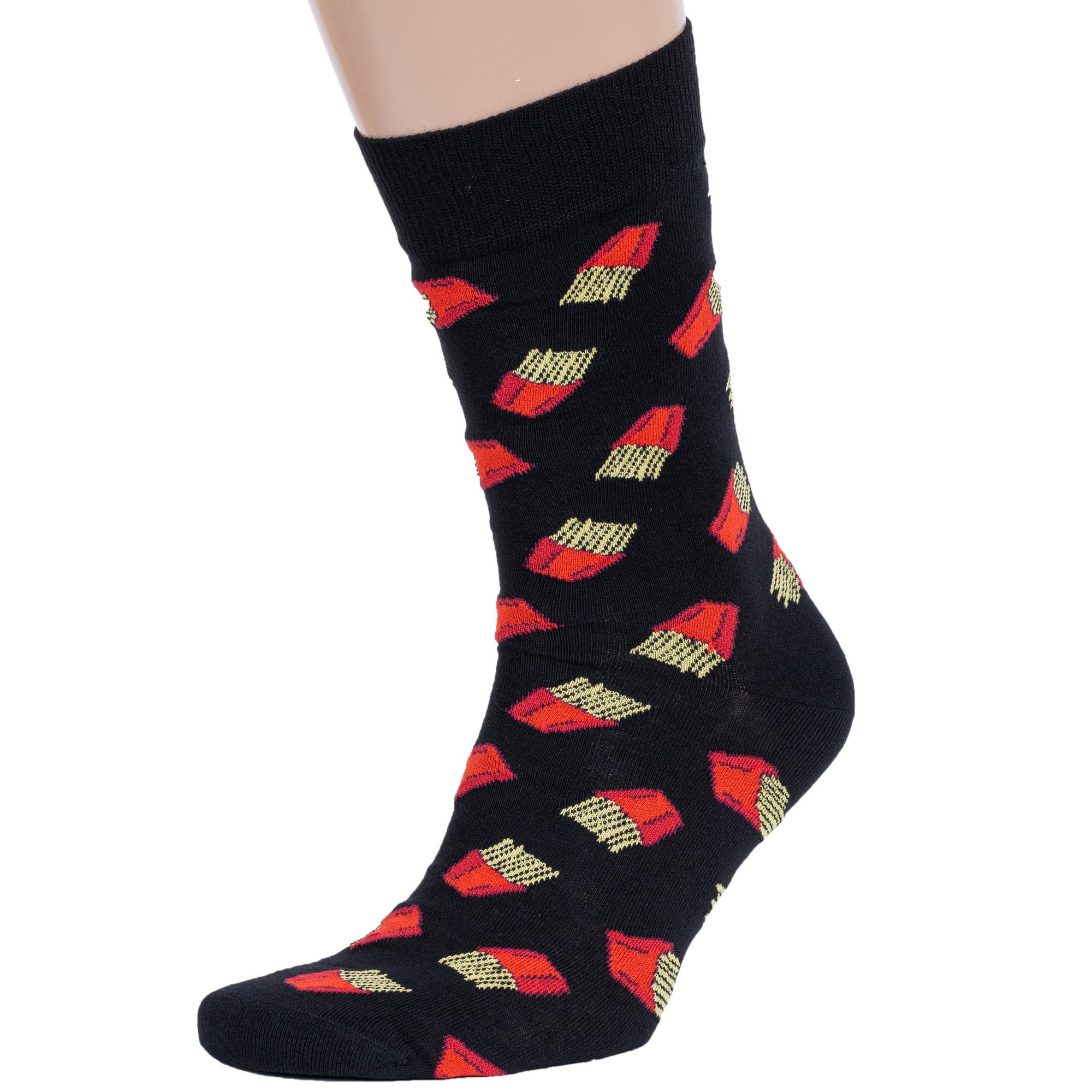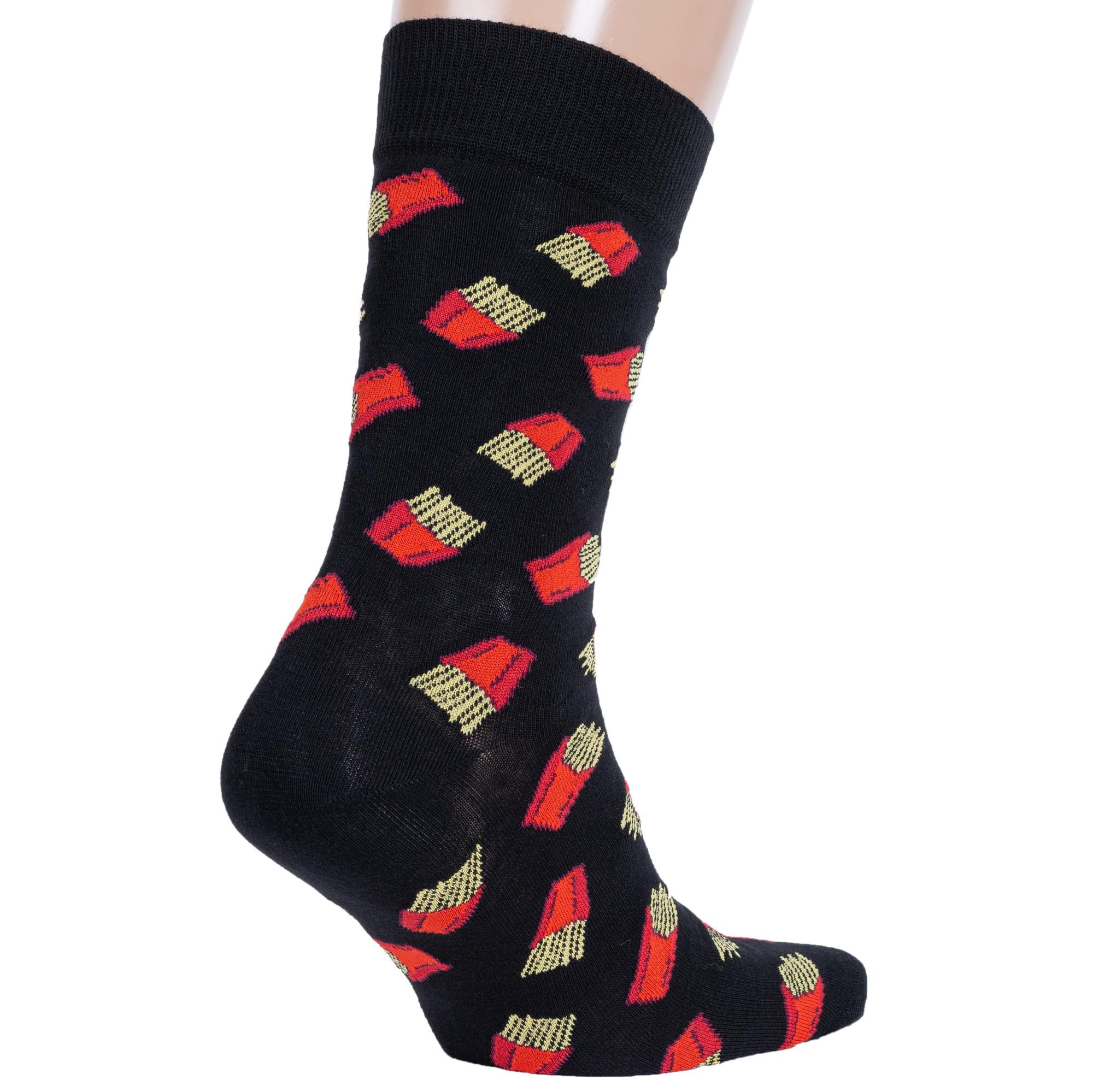 Круглогодичные средней длины мужские носки, цвет черный, повседневные, шов кеттельный (бесшовная технология), принт (рисунок): еда и напитки, с узором, состав: 78% хлопок, 20% полиамид, 2% эластан, арт. М3-13014. Производитель «ООО Орудьевский трикотаж, Россия» под брендом «Rusocks (орудьевский трикотаж)».