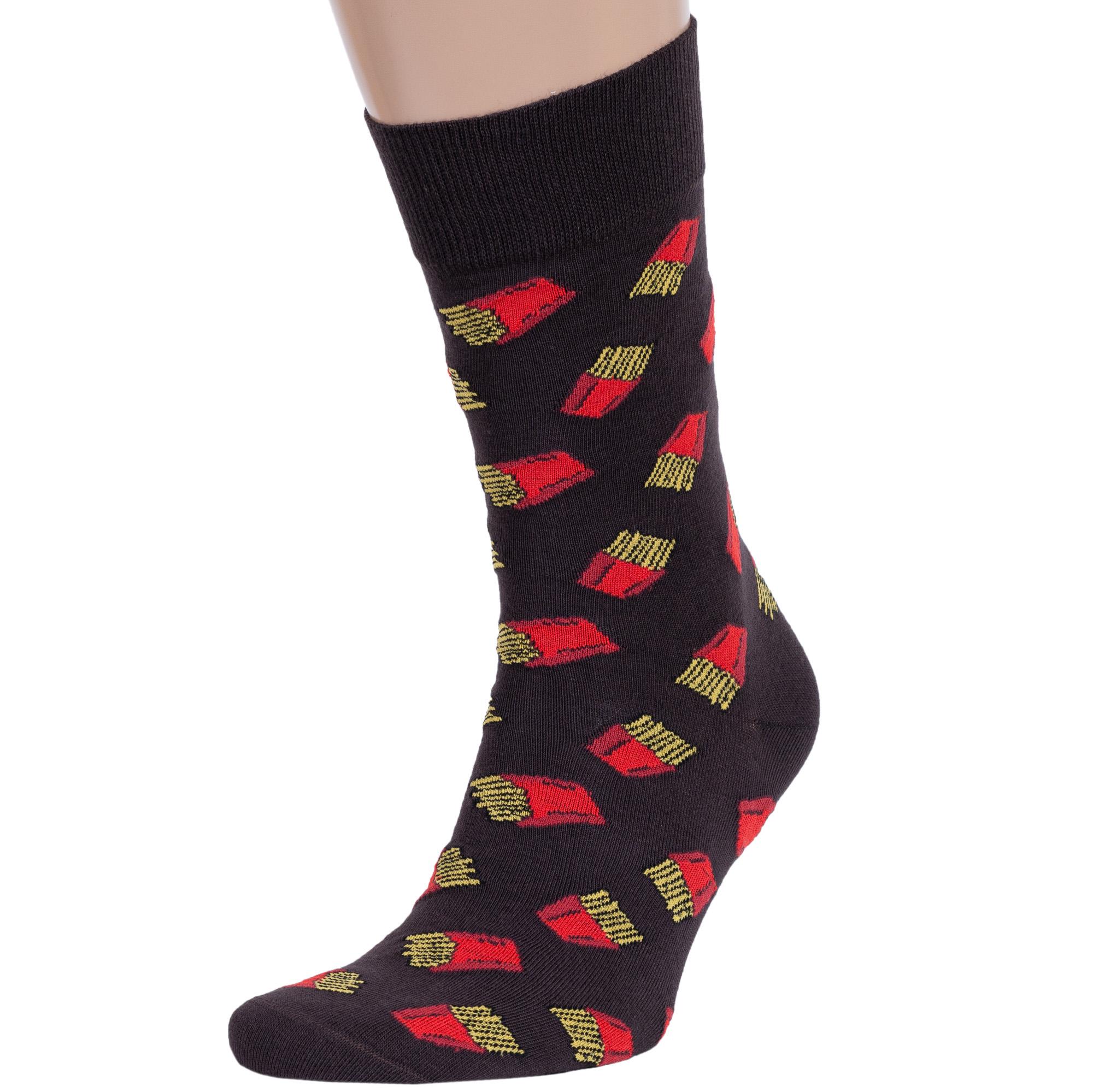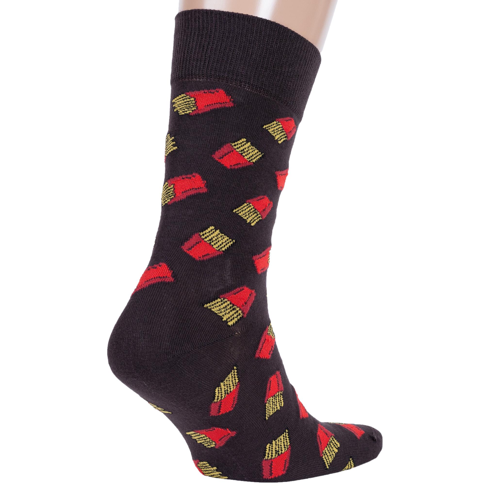 Круглогодичные средней длины мужские носки, цвет коричневый, повседневные, шов кеттельный (бесшовная технология), принт (рисунок): еда и напитки, с узором, состав: 78% хлопок, 20% полиамид, 2% эластан, арт. М3-13014. Производитель «ООО Орудьевский трикотаж, Россия» под брендом «Rusocks (орудьевский трикотаж)».