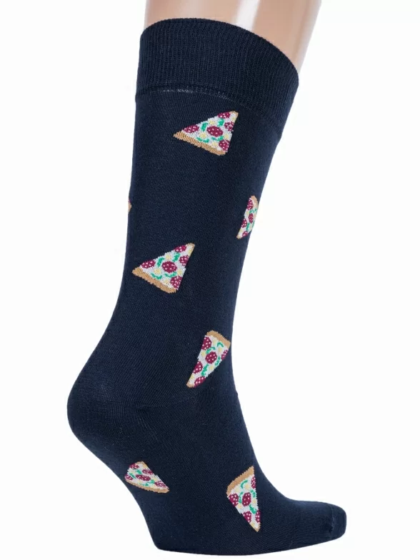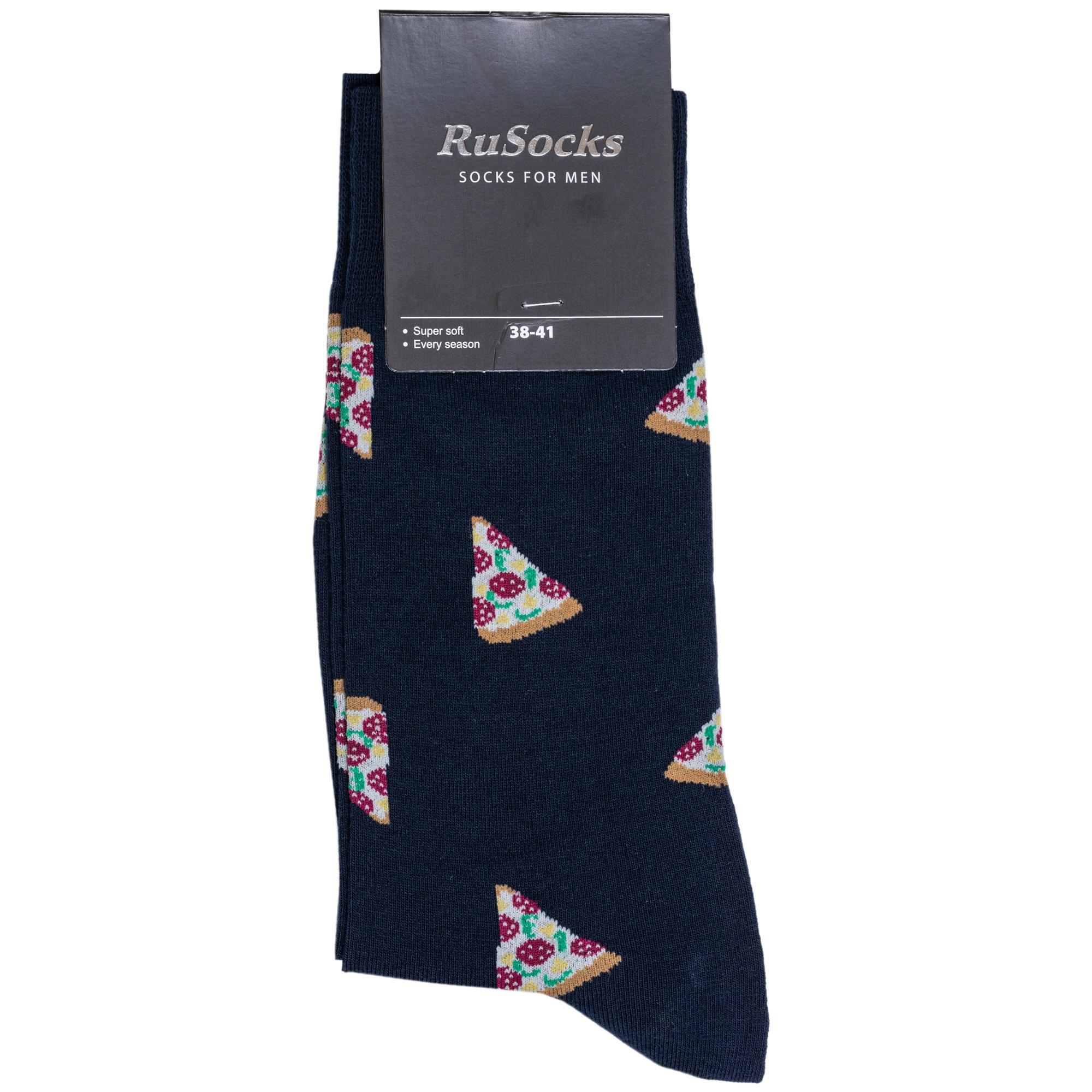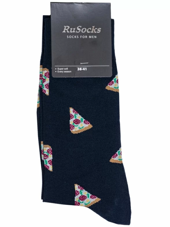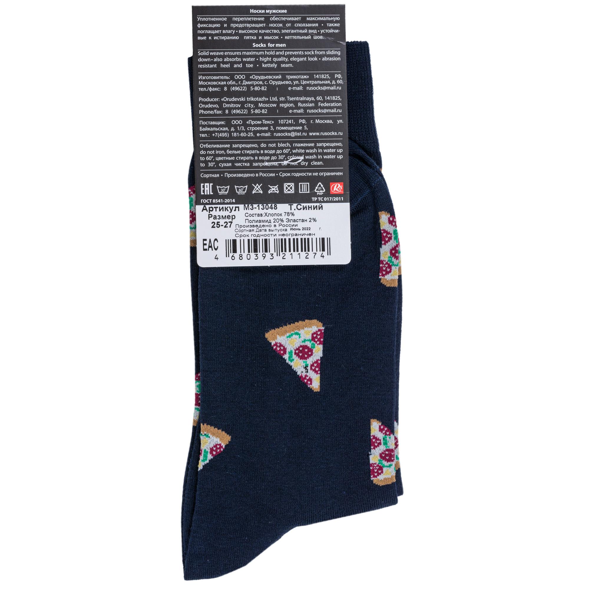 Круглогодичные средней длины мужские носки, цвет темно-синий, повседневные, шов кеттельный (бесшовная технология), принт (рисунок): еда и напитки, с узором, состав: 78% хлопок, 20% полиамид, 2% эластан, арт. М3-13048. Производитель «ООО Орудьевский трикотаж, Россия» под брендом «Rusocks (орудьевский трикотаж)».