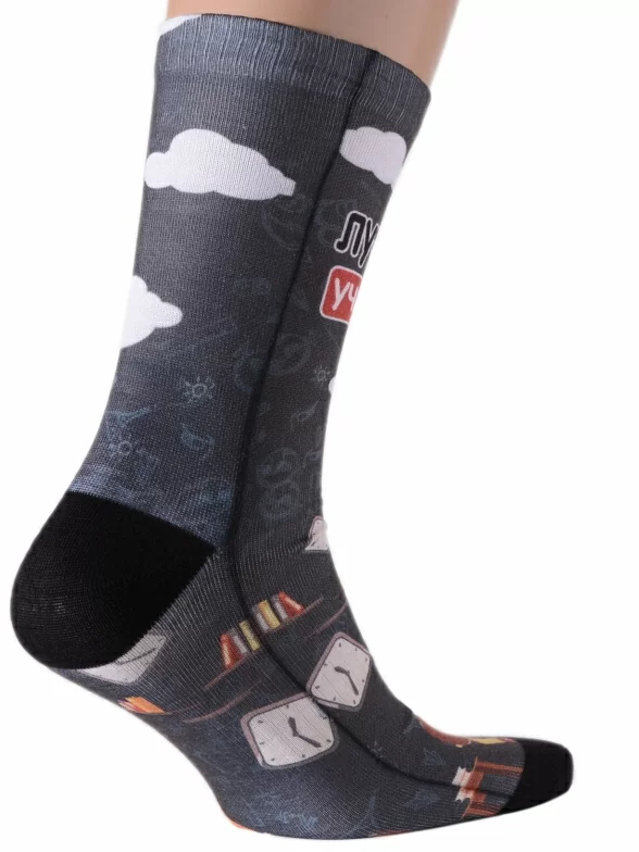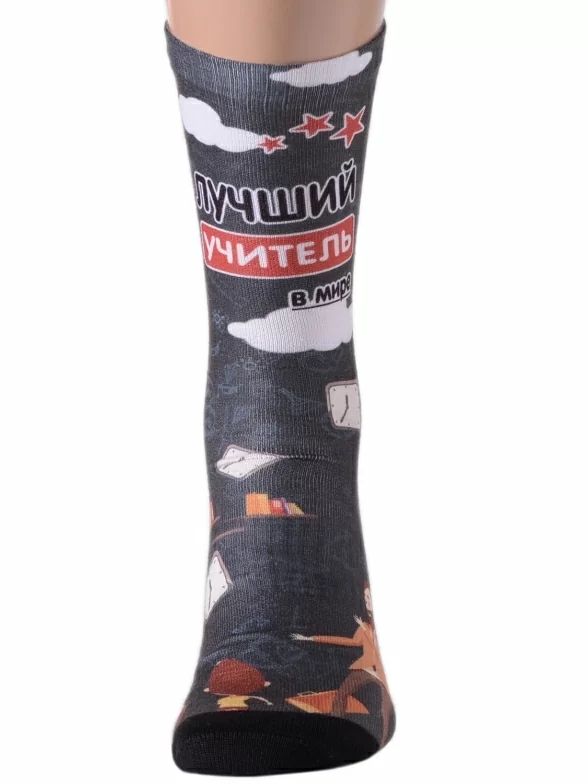 Круглогодичные средней длины мужские носки, принтованные, повседневные, шов обычный (не бесшовные), принт (рисунок): с узором, люди, надписи, учеба, состав: 70% полиэстер, 22% хлопок, 4% эластан, 4% нейлон, арт. 1НПП. Производитель «НОСМАГСТЕР» Россия .