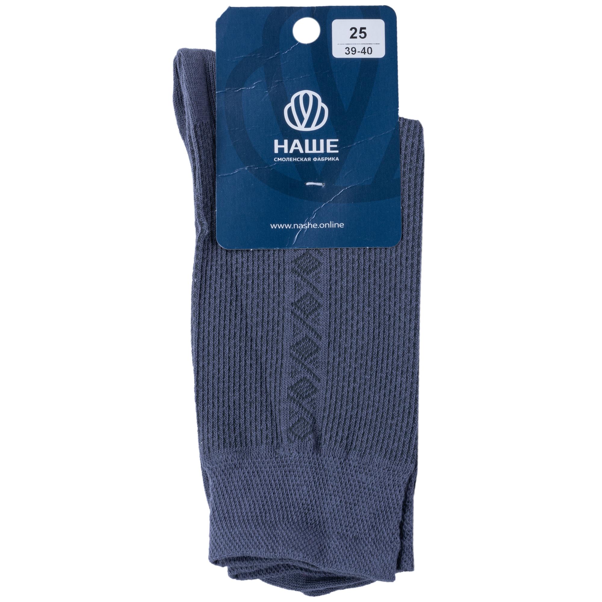 Летние средней длины мужские носки, цвет темно-серый, в сеточку, классические, шов обычный (не бесшовные), принт (рисунок): орнамент, с узором, однотонный, состав: 75% хлопок, 25% полиамид, арт. 511С4. Производитель «Смоленская чулочная фабрика, Россия» под брендом «Наше смоленской чулочной фабрики».