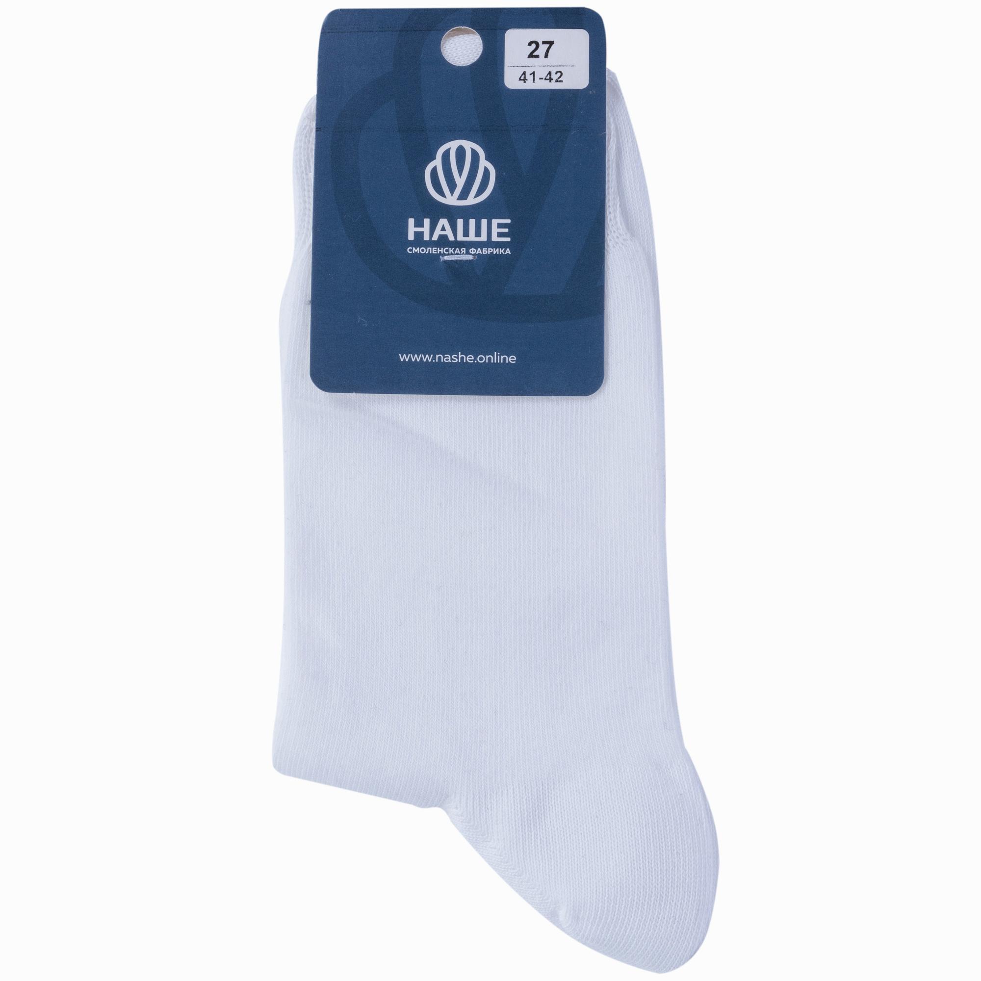 Круглогодичные средней длины мужские носки, цвет белый, классические, шов обычный (не бесшовные), принт (рисунок): однотонный, без рисунков/узоров, состав: 73% хлопок, 25% полиэстер, 2% эластан, арт. 522С12. Производитель «Смоленская чулочная фабрика, Россия» под брендом «Наше смоленской чулочной фабрики».