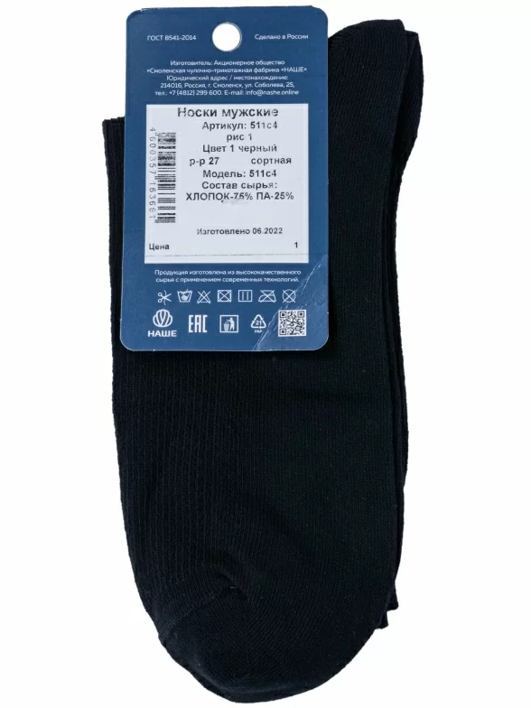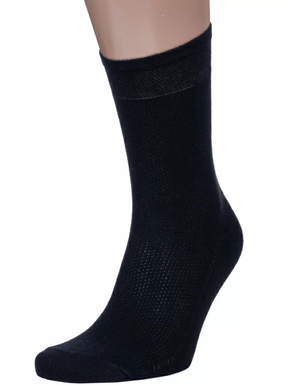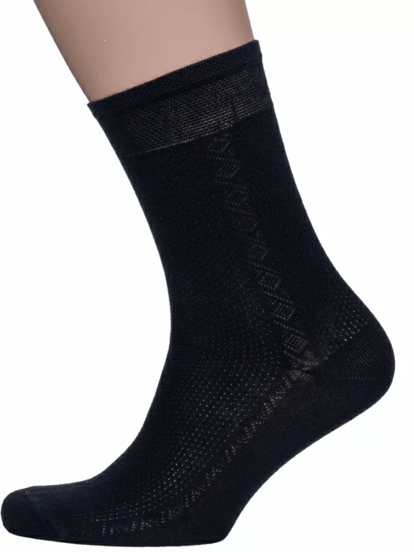 Летние средней длины мужские носки, цвет черный, в сеточку, классические, шов обычный (не бесшовные), принт (рисунок): орнамент, с узором, однотонный, состав: 75% хлопок, 25% полиамид, арт. 511С4. Производитель «Смоленская чулочная фабрика, Россия» под брендом «Наше смоленской чулочной фабрики».
