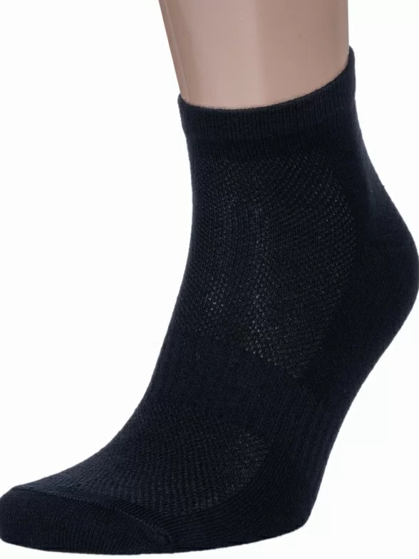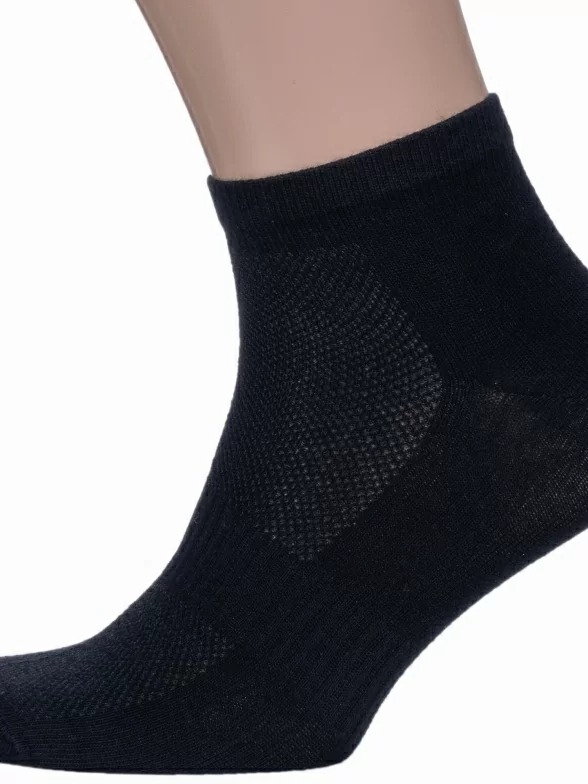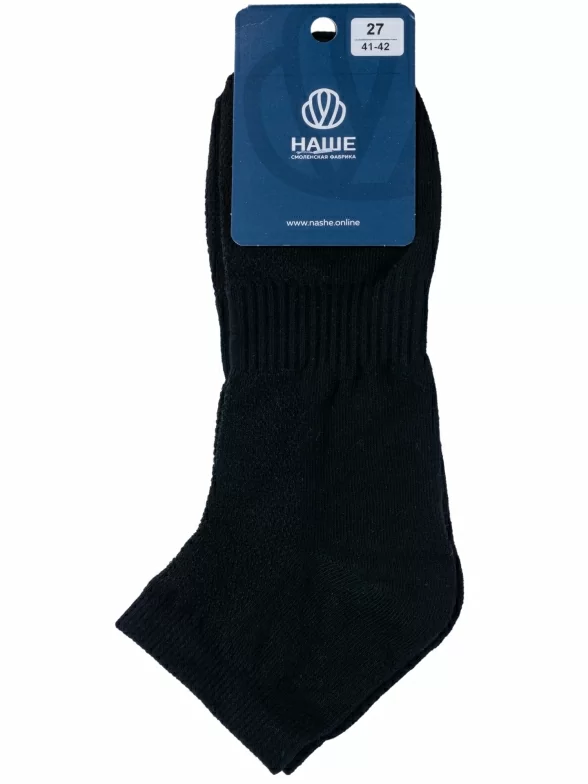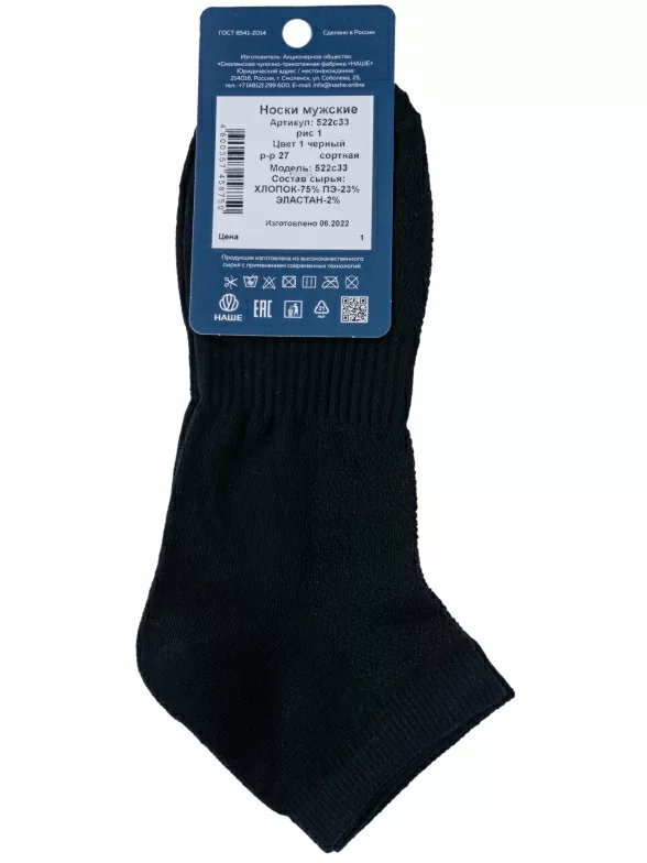 Летние короткие мужские носки, цвет черный, спортивные, в сеточку, шов обычный (не бесшовные), принт (рисунок): спортивные, однотонный, состав: 75% хлопок, 23% полиэстер, 2% эластан, арт. 522С33. Производитель «Смоленская чулочная фабрика, Россия» под брендом «Наше смоленской чулочной фабрики».