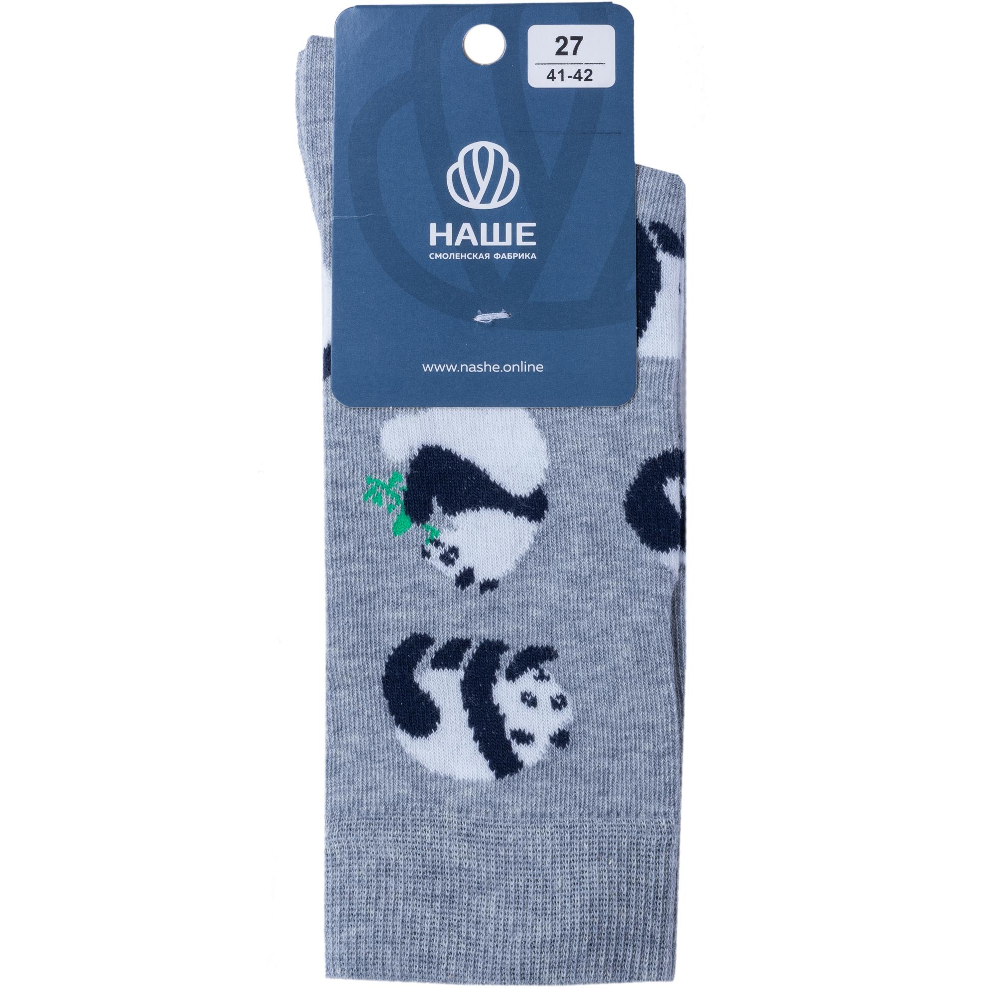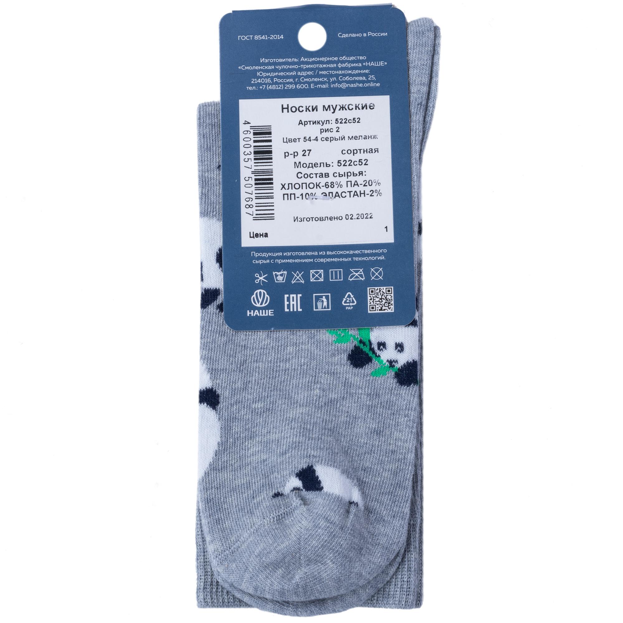 Круглогодичные средней длины мужские носки, цвет серый, повседневные, шов обычный (не бесшовные), принт (рисунок): животные, с узором, крупные контрастные рисунки, состав: 68% хлопок, 20% полиамид, 10% полипропилен, 2% эластан, арт. 522С52. Производитель «Смоленская чулочная фабрика, Россия» под брендом «Наше смоленской чулочной фабрики».