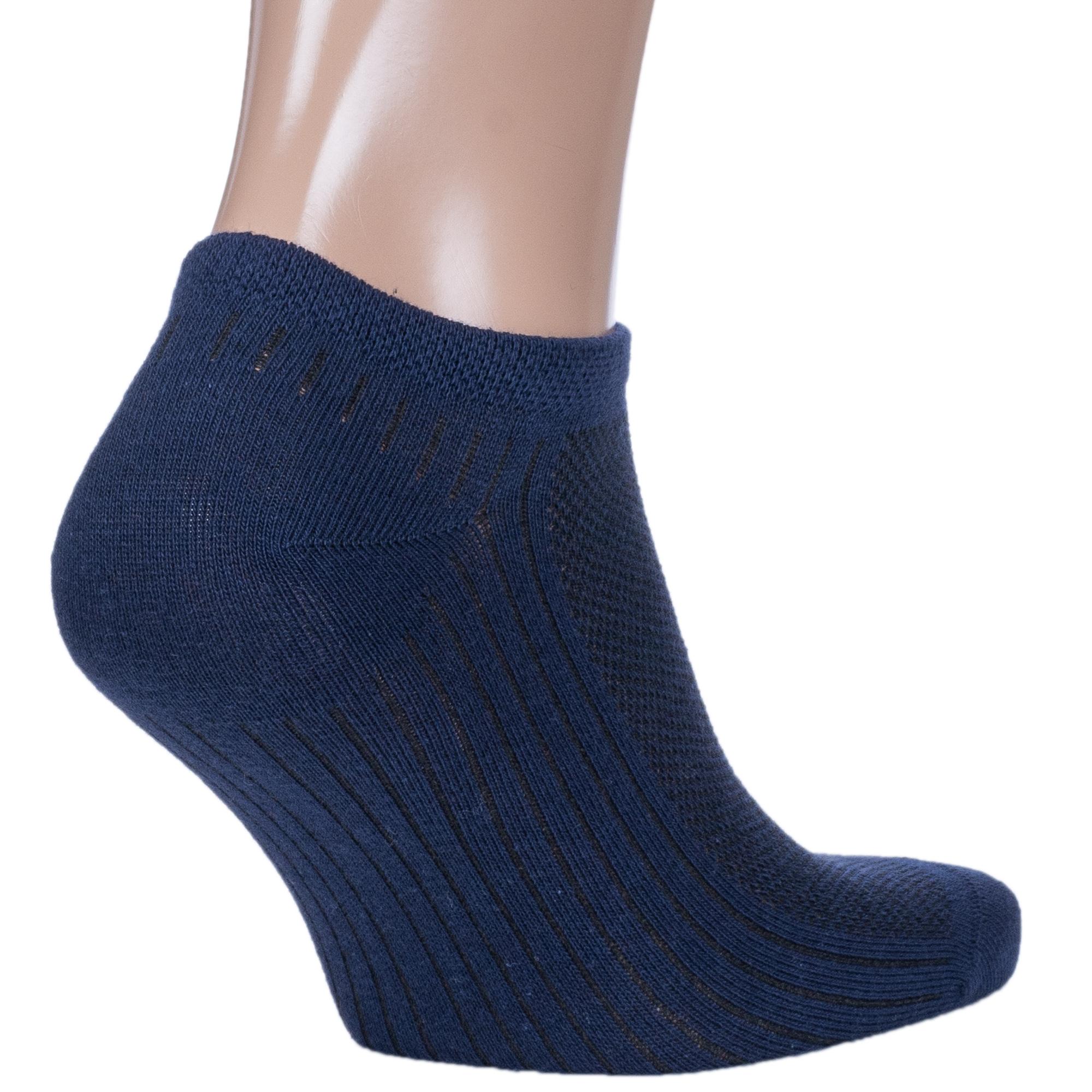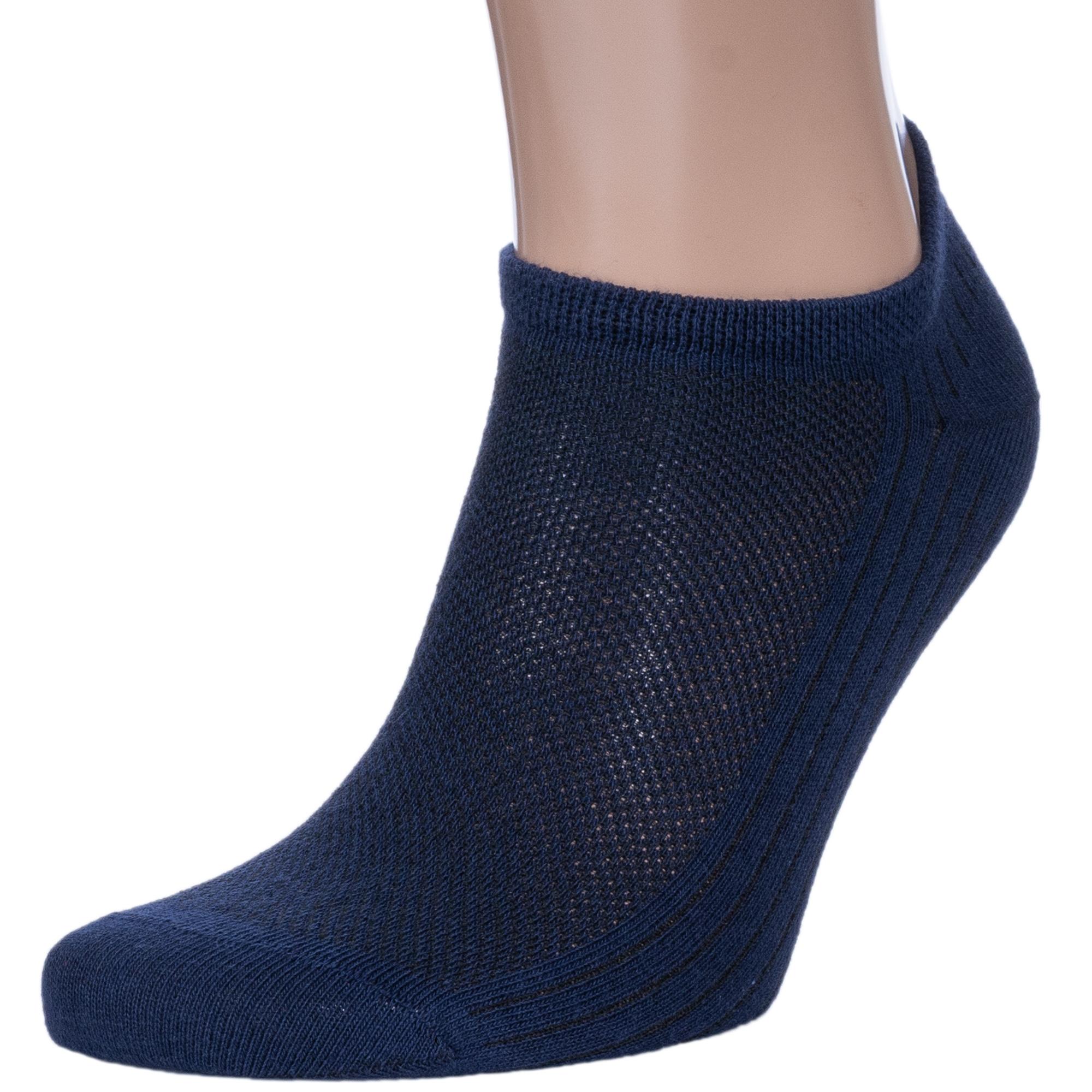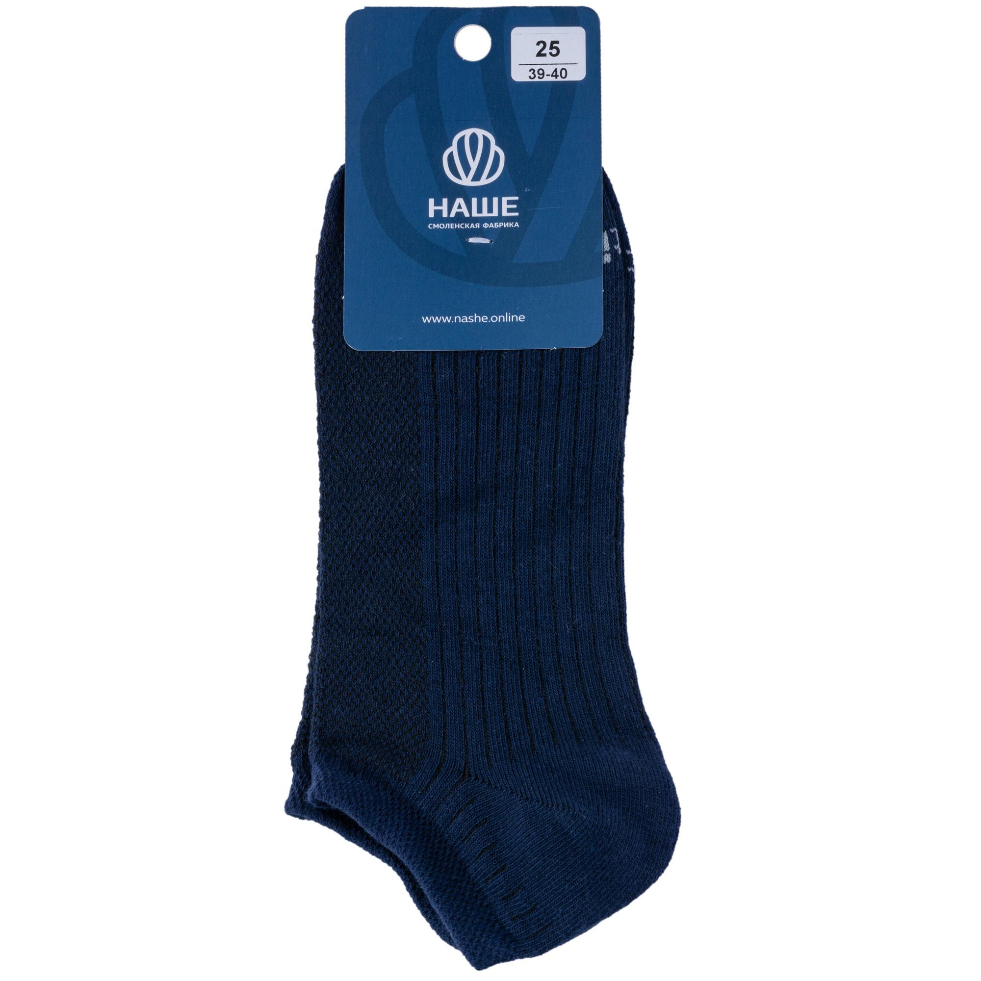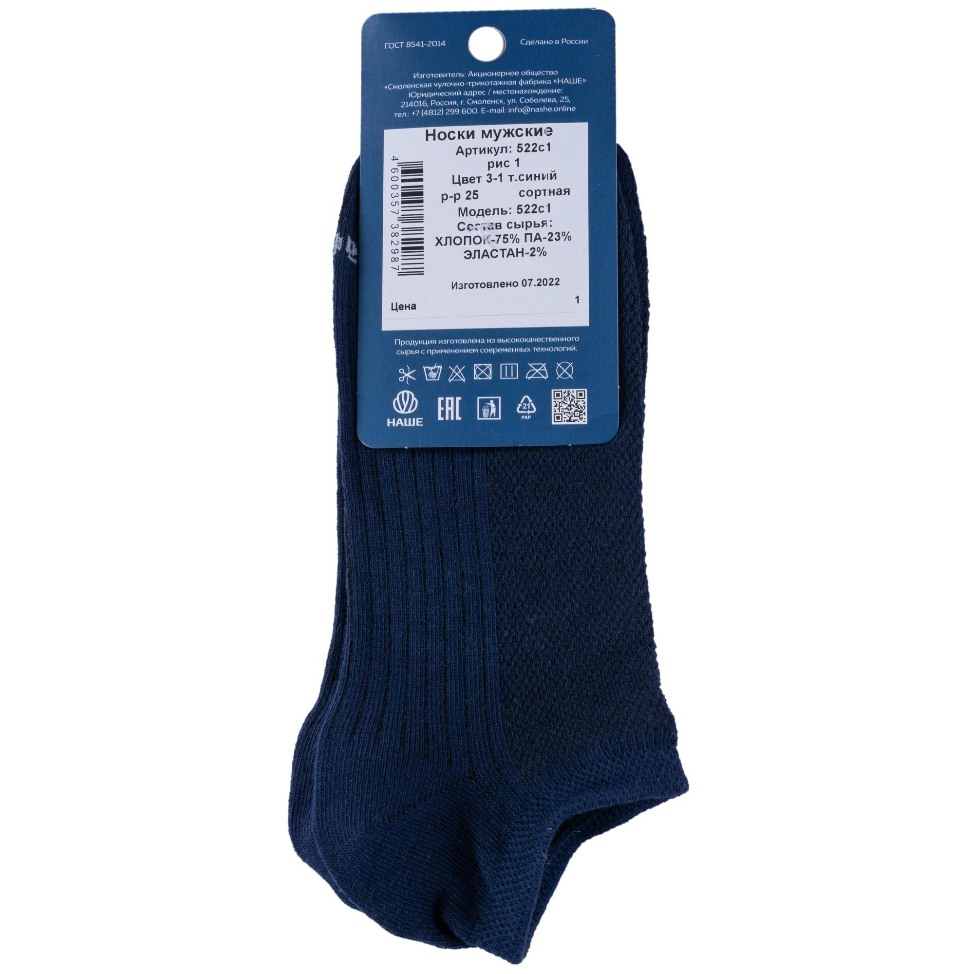 Летние ультракороткие мужские носки, цвет темно-синий, в сеточку, спортивные, шов обычный (не бесшовные), принт (рисунок): однотонный, спортивные, состав: 75% хлопок, 23% полиамид, 2% эластан, арт. 522С1-1. Производитель «Смоленская чулочная фабрика, Россия» под брендом «Наше смоленской чулочной фабрики».
