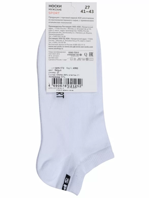 Мужские короткие спортивные носки ХОХ, SPM-172, БЕЛЫЕ