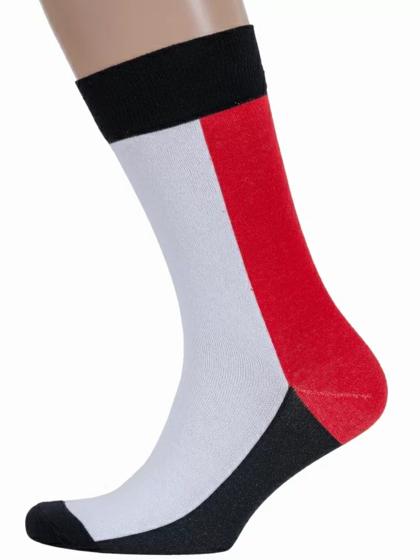 Круглогодичные средней длины мужские носки, классические, шов обычный (не бесшовные), принт (рисунок): контрастные пятка / мысок / резинка, с узором, состав: 80% хлопок, 17% полиамид, 3% лайкра (эластан), арт. 31-MAG. Производитель «ООО «Чулочно-носочная фабрика «Нева-Сокс», Ленинградская обл, Россия» под брендом «Нева-сокс».
